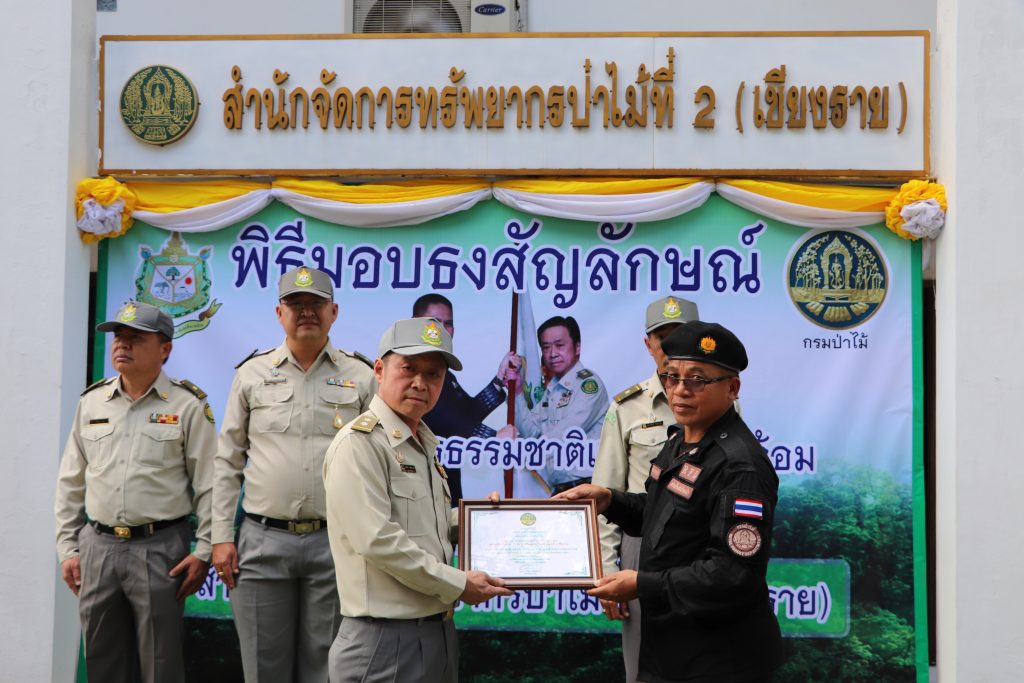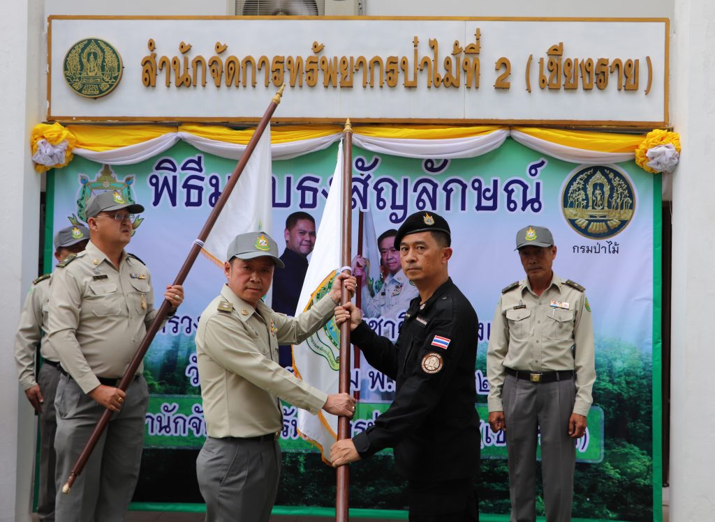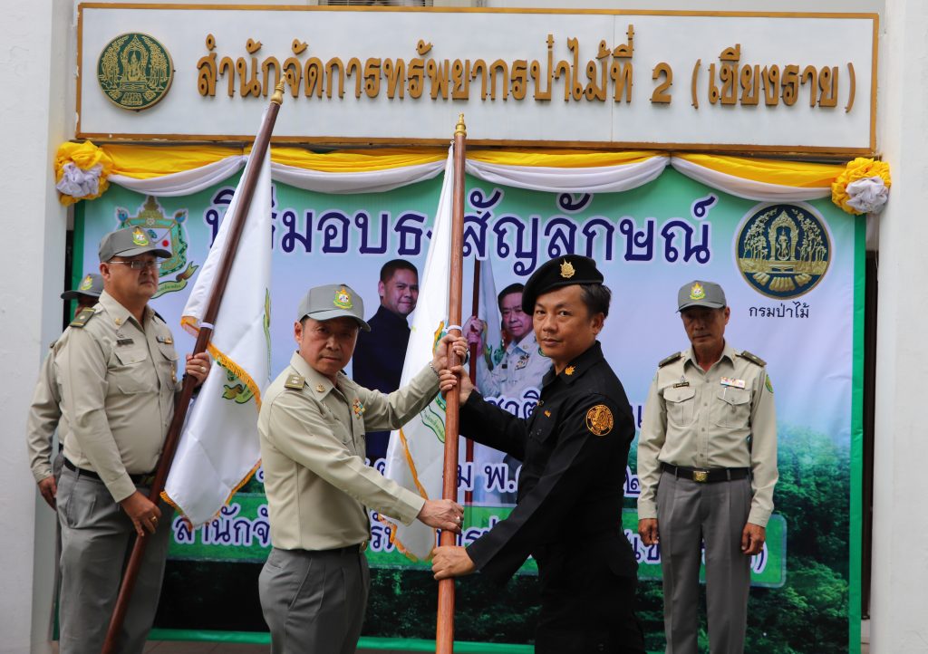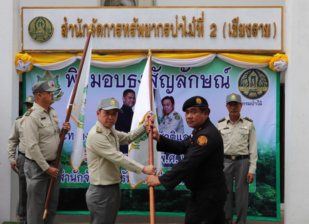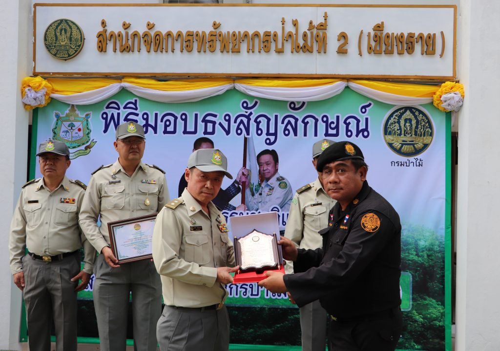 วันที่ 15 ตุลาคม 2562 สำนักจัดการทรัพยากรป่าไม้ที่ 2 (เชียงราย) จัดพิธีมอบธงสัญลักษณ์กระทรวงทรัพยากรธรรมชาติและสิ่งแวดล้อม พร้อมถ่ายทอดนโยบายของรัฐมนตรีว่าการกระทรวงทรัพยากรธรรมชาติและสิ่งแวดล้อม นายวราวุธ ศิลปอาชา ให้กับศูนย์ป่าไม้และหน่วยป่องกันและพัฒนาป่าไม้ในสังกัด เพื่อยืนยันว่าจะปฏิบัติตามนโยบายอย่างเคร่งครัด โดยมี นายสมศักดิ์ เจียมสงวนวงค์ ผู้อำนวยการสำนักจัดการทรัพยากรป่าไม้ที่ 2 (เชียงราย) เป็นประธานพิธี พร้อมมอบโล่ประกาศเกียรติคุณให้แก่หน่วยป้องกันรักษาป่าดีเด่น