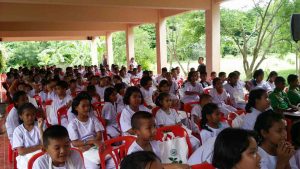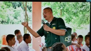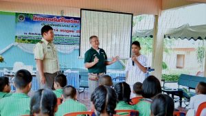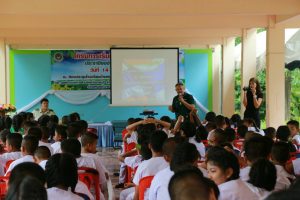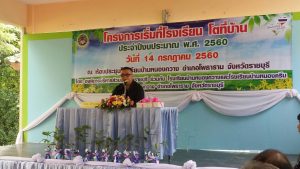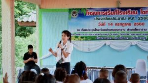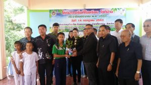วันศุกร์ที่ ๑๔ กรกฎาคม ๒๕๖๐ ศูนย์เพาะชำกล้าไม้ราชบุรี ได้รับเชิญจาก อบจ.ราชบุรี ให้เป็นวิทยากรทำหน้าที่ครูกล้าไม้ ในการจัดอบรมโครงการ”เริ่มที่โรงเรียน โตที่บ้าน” หัวข้อ ปัญหาด้านทรัพยากรธรรมชาติและสิ่งแวดล้อม ให้กับนักเรียนโรงเรียนบ้านหนองกวาง และนักเรียนจากโรงเรียนบ้านหนองครึม ตำบลหนองกวาง อำเภอโพธาราม จังหวัดราชบุรี จำนวน ๒๐๐ คน โดย องค์การบริหารส่วนจังหวัดราชบุรี เป็นเจ้าภาพจัดงาน สำหรับกิจกรรมในวันนี้ภาคเช้าเป็นการบรรยายให้ความรู้เรื่อง ปัญหาด้านทรัพยากรธรรมชาติและสิ่งแวดล้อม ผลกระทบจากการตัดไม้ทำลายป่า การเกิดสภาวะโลกร้อน แนวทางในการแก้ไขด้วยการปลูกต้นไม้ และการเพาะกล้าไม้แบบประชารัฐ โดยการมีส่วนร่วมของนักเรียน เน้นให้จัดตั้งโรงเรียนกล้าไม้ พร้อมมีการฝึกปฎิบัติการเพาะชำกล้าไม้โดยดำเนินการเป็นวิทยากรร่วมกับสจป.ที่ ๑๐ (ราชบุรี) ในรูปแบบเกมส์การแข่งขัน มีการสาธิตการใช้ขวดขยะเหลือทิ้ง นำมาใช้เป็นภาชนะ ในการเพาะชำกล้าไม้ ตามหลัก ๓R คือ reduce reuse recycle และการบำรุงดูแลรักษากล้าไม้ให้มีคุณภาพดี พร้อมปลูก ทั้งนี้กล้าไม้ที่นักเรียนร่วมกันเพาะชำโดยการใช้เมล็ด จำนวนกว่า ๙๐๐ ถุง ซึ่งมีทั้งไม้กินได้ ไม้ดอกสวยงาม และไม้ให้ร่มเงา นักเรียนจะได้นำไปดูแลและปลูกในพื้นที่บ้านของตนเองต่อไป