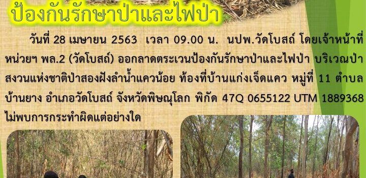 วันที่ 6 เม.ย.63 ผู้อำนวยการศูนย์ป่าไม้พิษณุโลก และผู้อำนวยการสำนักงานทรัพยากรธรรมชาติสิ่งแวดล้อม จ.พิษณุโลก ได้เดินทางมาตรวจเยี่ยมเจ้าหน้าที่หน่วยฯพล […]