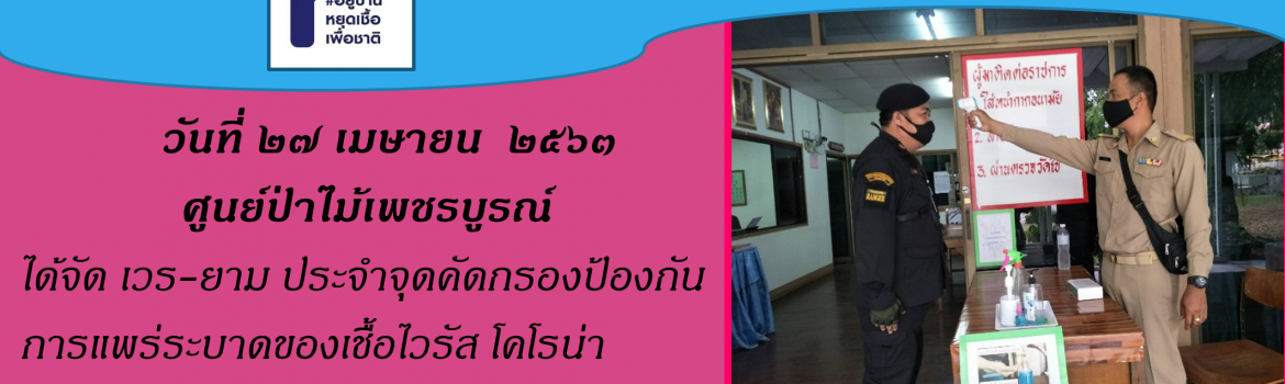 วันที่ 1 เมษายน 2563ศูนย์ป่าไม้เพชรบูรณ์ได้จัดเวร-ยาม เพื่อประจำจุดคัดกรองป้องกันการแพร่ระบาดของเชื้อไวรัสโคโรนา (COVID-19) ในบริเวณสำนักงาน โดยกำหนดใ […]