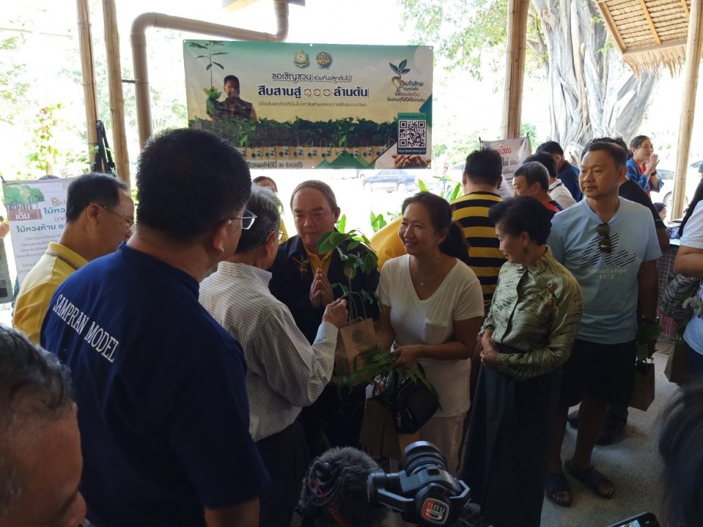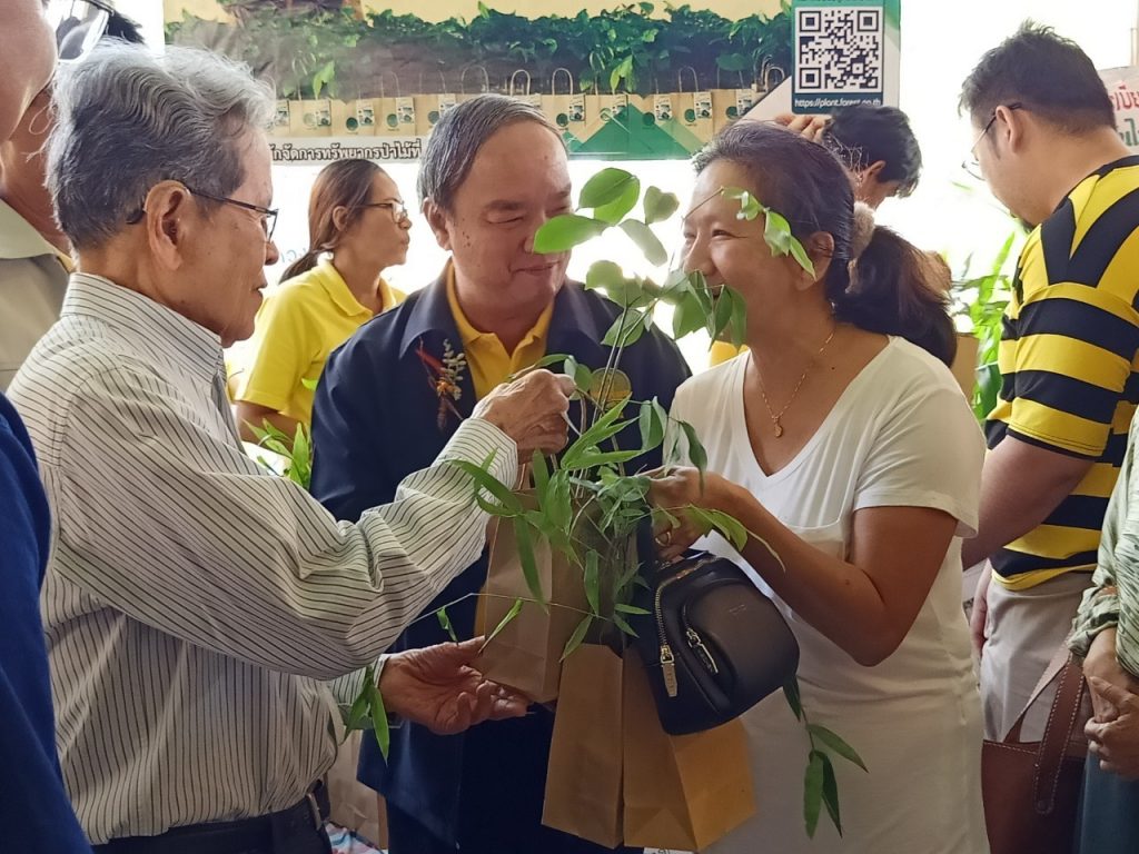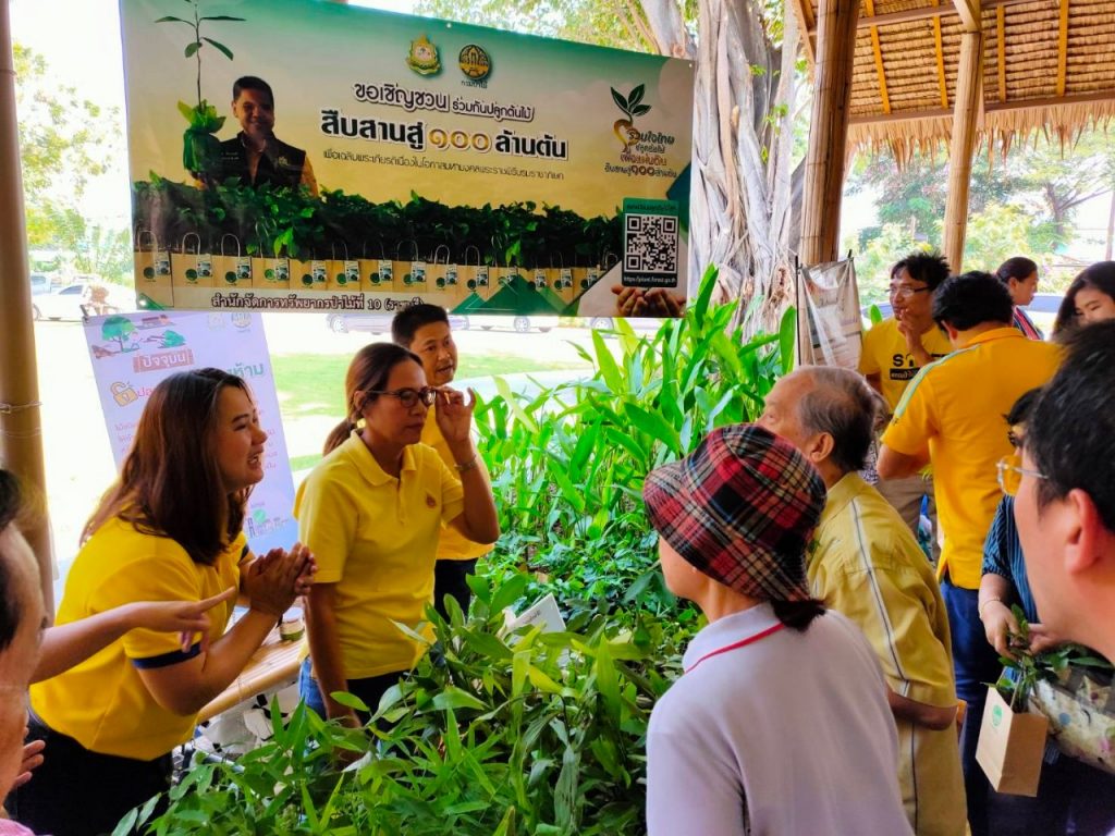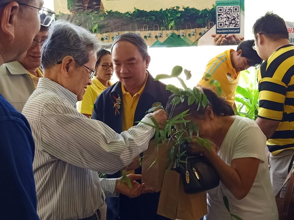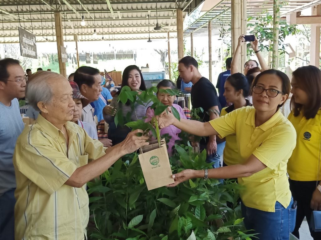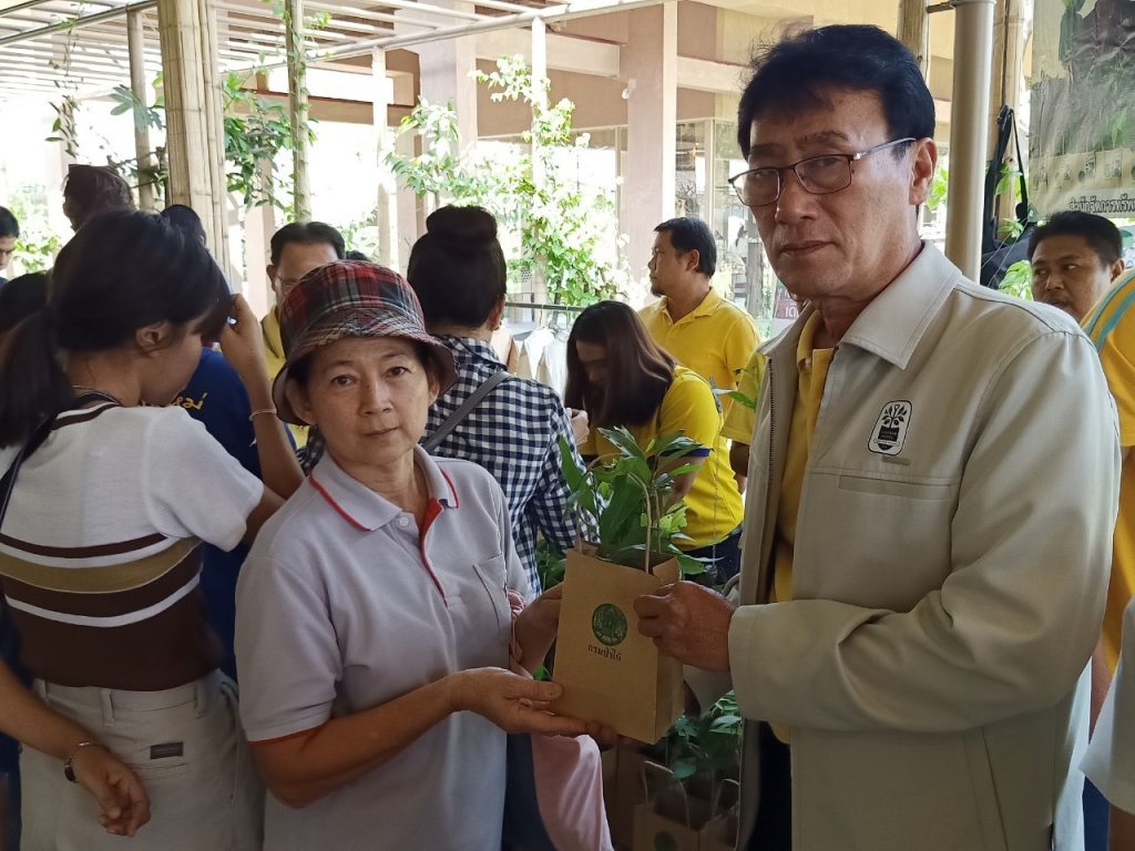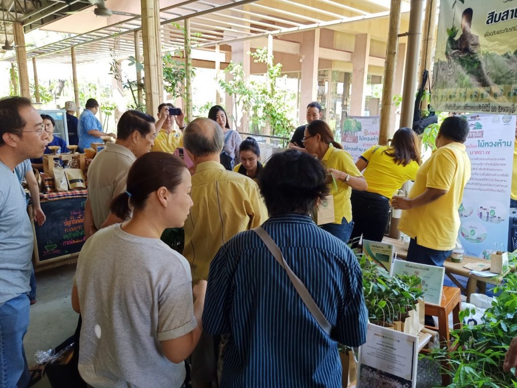 วันเสาร์ ที่ ๙ พฤศจิกายน ๒๕๖๒ นายศรศักดิ์ วิริยะเอกกูล ผู้อำนวยการส่วนอำนวยการ นายเสรี รัตนเย็นใจ ผู้อำนวยการส่วนส่งเสริมการป่าไม้ และนายสมหวัง หวังเศรษฐกุล ผู้อำนวยการศูนย์ป่าไม้นครปฐม พร้อมด้วยเจ้าหน้าที่ สังกัดสำนักจัดการทรัพยากรป่าไม้ที่ ๑๐(ราชบุรี) เข้าร่วมงานครบรอบ ๙ปี ตลาดสุขใจ อ. สามพราน จ.นครปฐม และได้นำกล้าไม้พันธุ์ดี จำนวน ๕๐๐ กล้า ไปแจกจ่ายให้กับประชาชนที่มาร่วมงาน เพื่อเป็นการประชาสัมพันธุ์กิจกรรม “รวมใจไทย ปลูกต้นไม้เพื่อแผ่นดิน สืบสานสู่ ๑๐๐ ล้านต้น”ซึ่งได้รับความสนใจจากประชาชนเป็นอย่างมาก