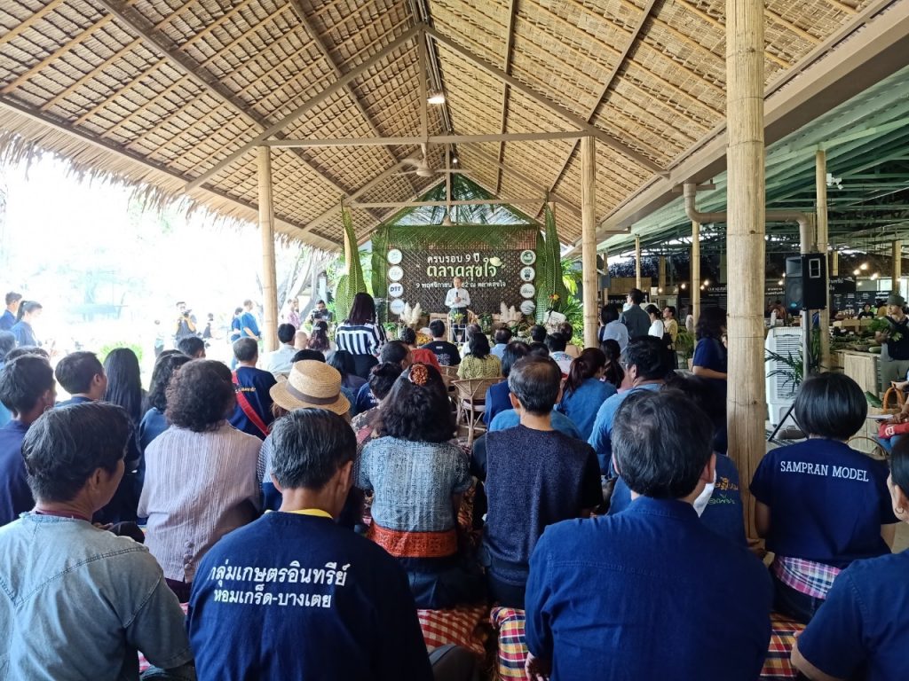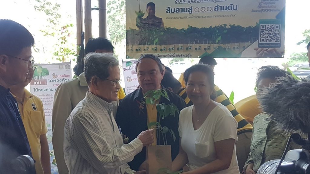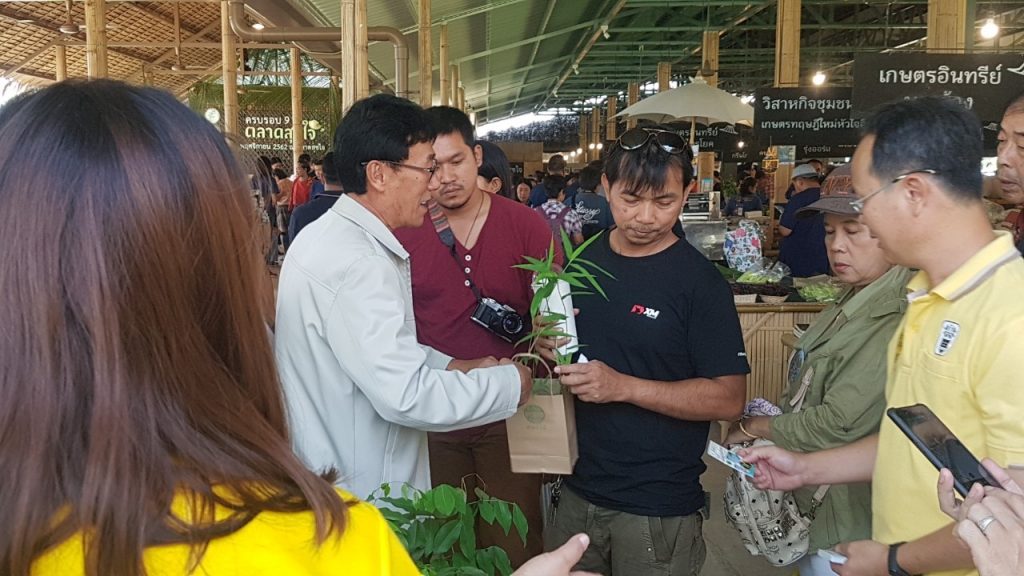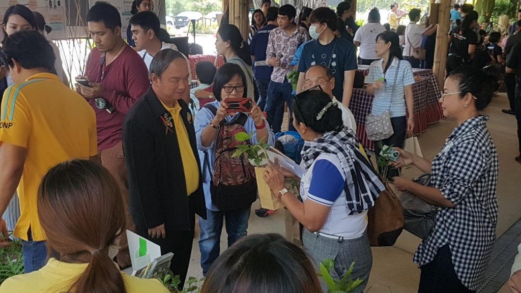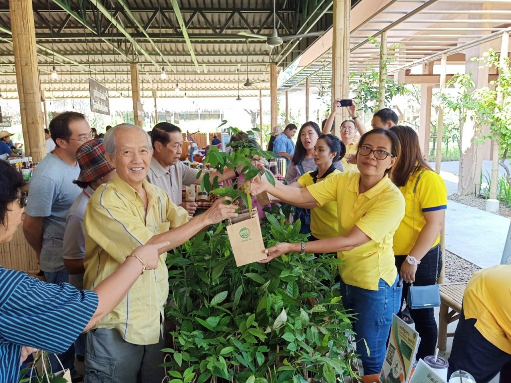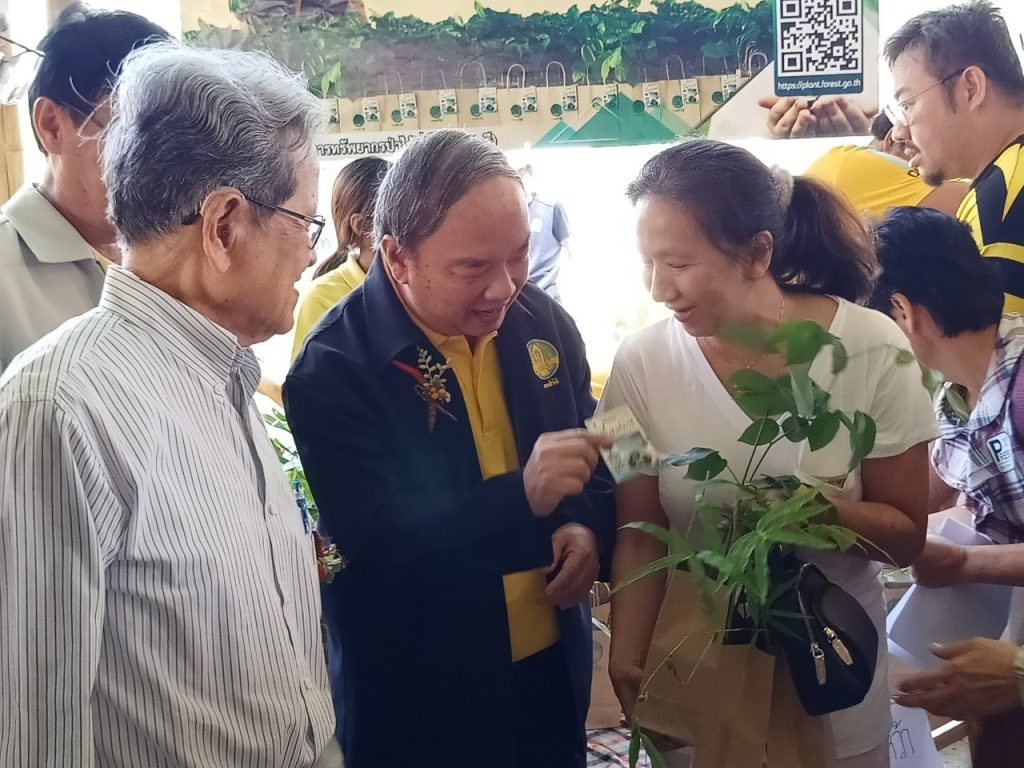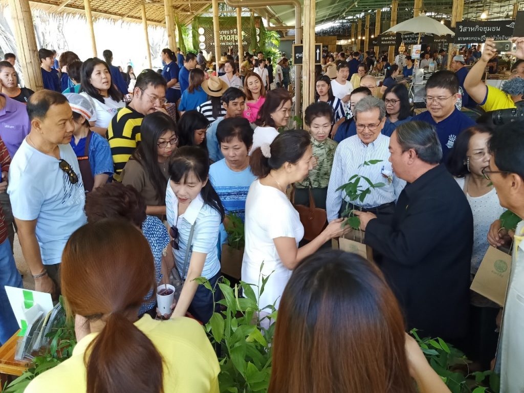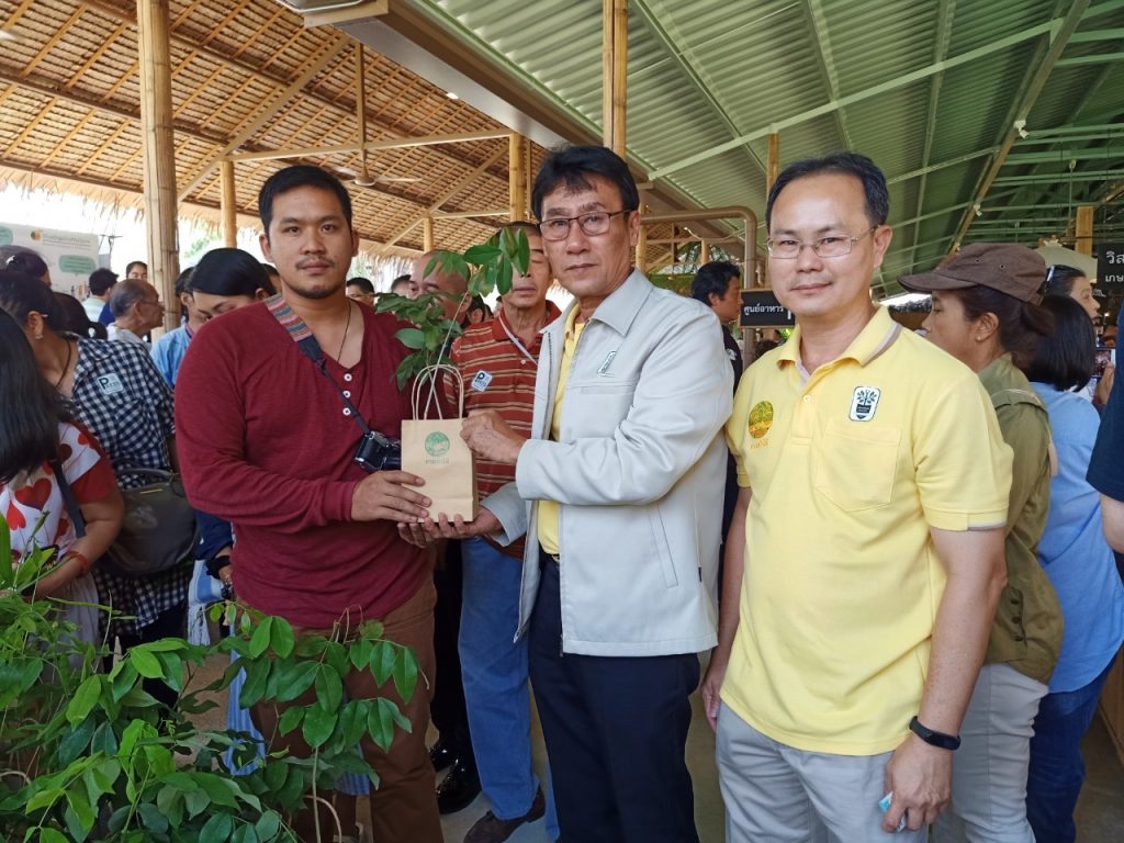 วันเสาร์ ที่ ๙ พฤศจิกายน ๒๕๖๒ นายศรศักดิ์ วิริยะเอกกูล ผู้อำนวยการส่วนอำนวยการ นายเสรี รัตนเย็นใจ ผู้อำนวยการส่วนส่งเสริมการป่าไม้ และนายสมหวัง หวังเศรษฐกุล ผู้อำนวยการศูนย์ป่าไม้นครปฐม พร้อมด้วยเจ้าหน้าที่ สังกัดสำนักจัดการทรัพยากรป่าไม้ที่ ๑๐(ราชบุรี) เข้าร่วมงานครบรอบ ๙ปี ตลาดสุขใจ อ. สามพราน จ.นครปฐม และได้นำกล้าไม้พันธุ์ดี จำนวน ๕๐๐ กล้า ไปแจกจ่ายให้กับประชาชนที่มาร่วมงาน เพื่อเป็นการประชาสัมพันธุ์กิจกรรม “รวมใจไทย ปลูกต้นไม้เพื่อแผ่นดิน สืบสานสู่ ๑๐๐ ล้านต้น”ซึ่งได้รับความสนใจจากประชาชนเป็นอย่างมาก