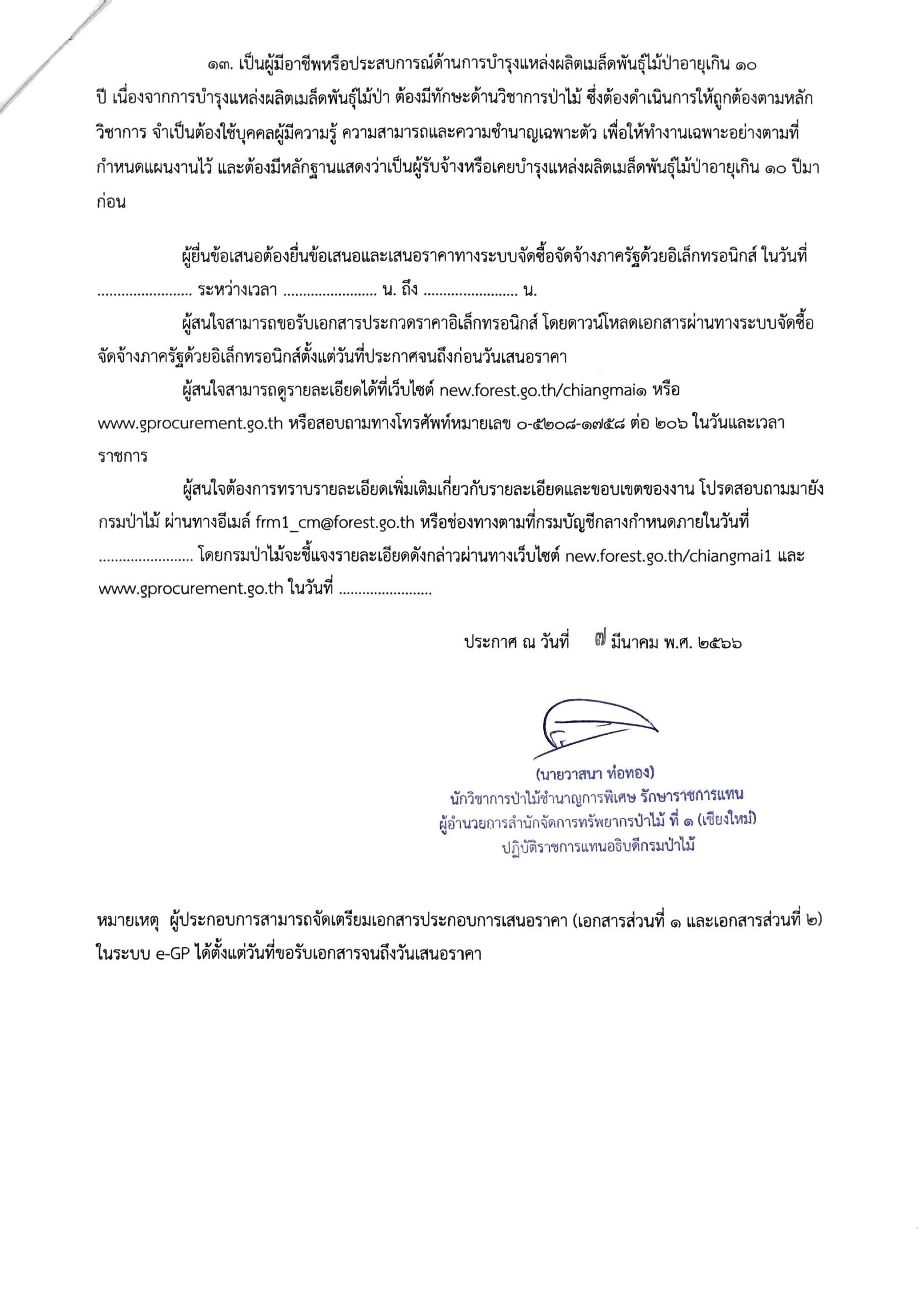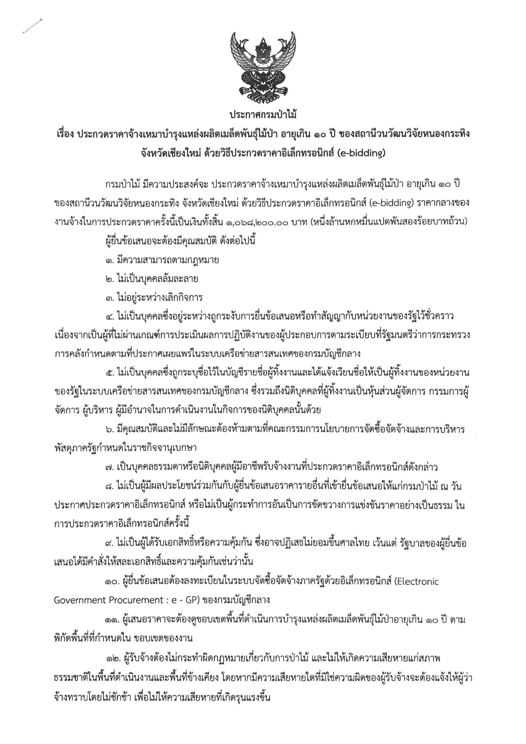 ประกาศกรมป่าไม้ เรื่อง ประกวดราคาจ้างเ หมาบำรุงแหล่งผลิตเมล็ดพันธุ์ไม้ป่า อายุเ กิน 10 ปี ของสถานีวนวัฒนวิจัยหนองกระทิง จัง หวัดเชียงใหม่ ด้วยวิธีประกวดราคาอิเล็กทร อนิกส์ (e-bidding) 8 มีนาคม 2023 by mailposter แชร์สิ่งนี้:Tweet