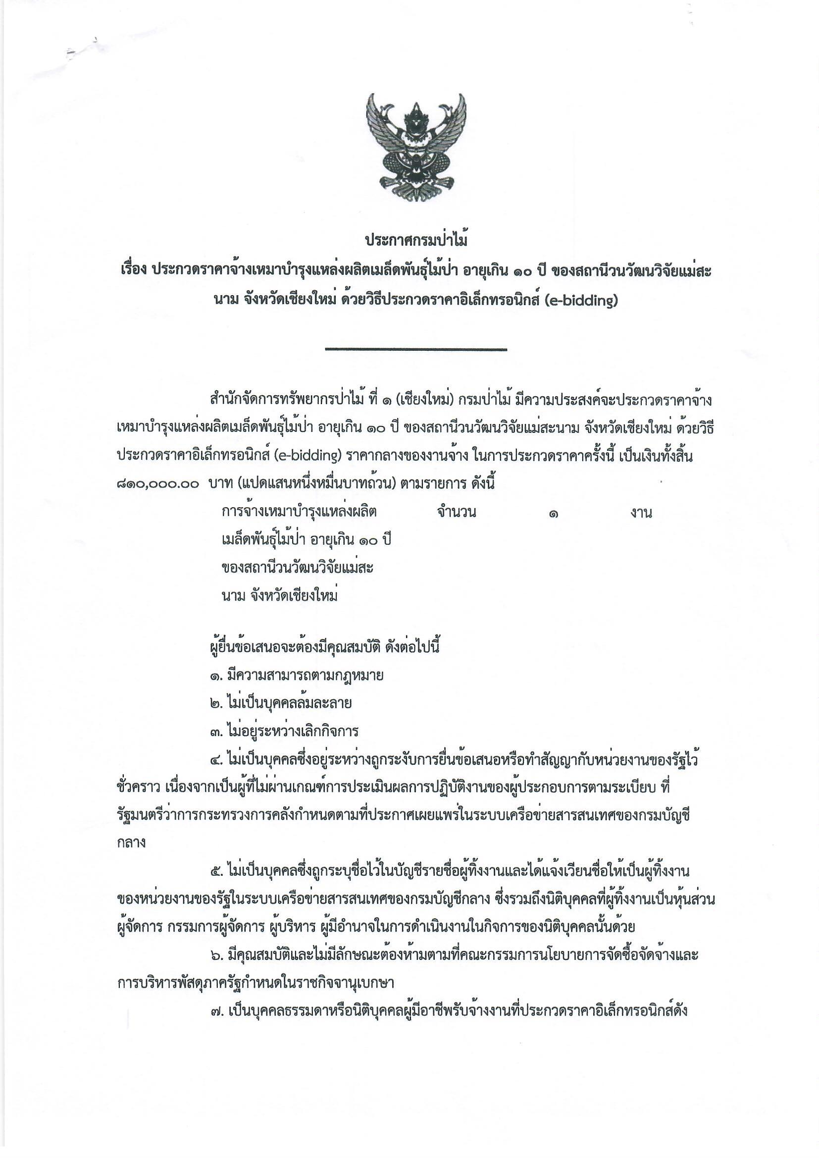 ประกาศกรมป่าไม้ เรื่อง ประกวดราคาจ้างเ หมาบำรุงแหล่งผลิตเมล็ดพันธุ์ไม้ป่า อายุเ กิน ๑๐ ปี ของสถานีวนวัฒนวิจัยแม่สะนาม จังห วัดเชียงใหม่ ด้วยวิธีประกวดราคาอิเล็กทรอ นิกส์ (e-bidding) 3 พฤษภาคม 2023 by mailposter แชร์สิ่งนี้:Tweet