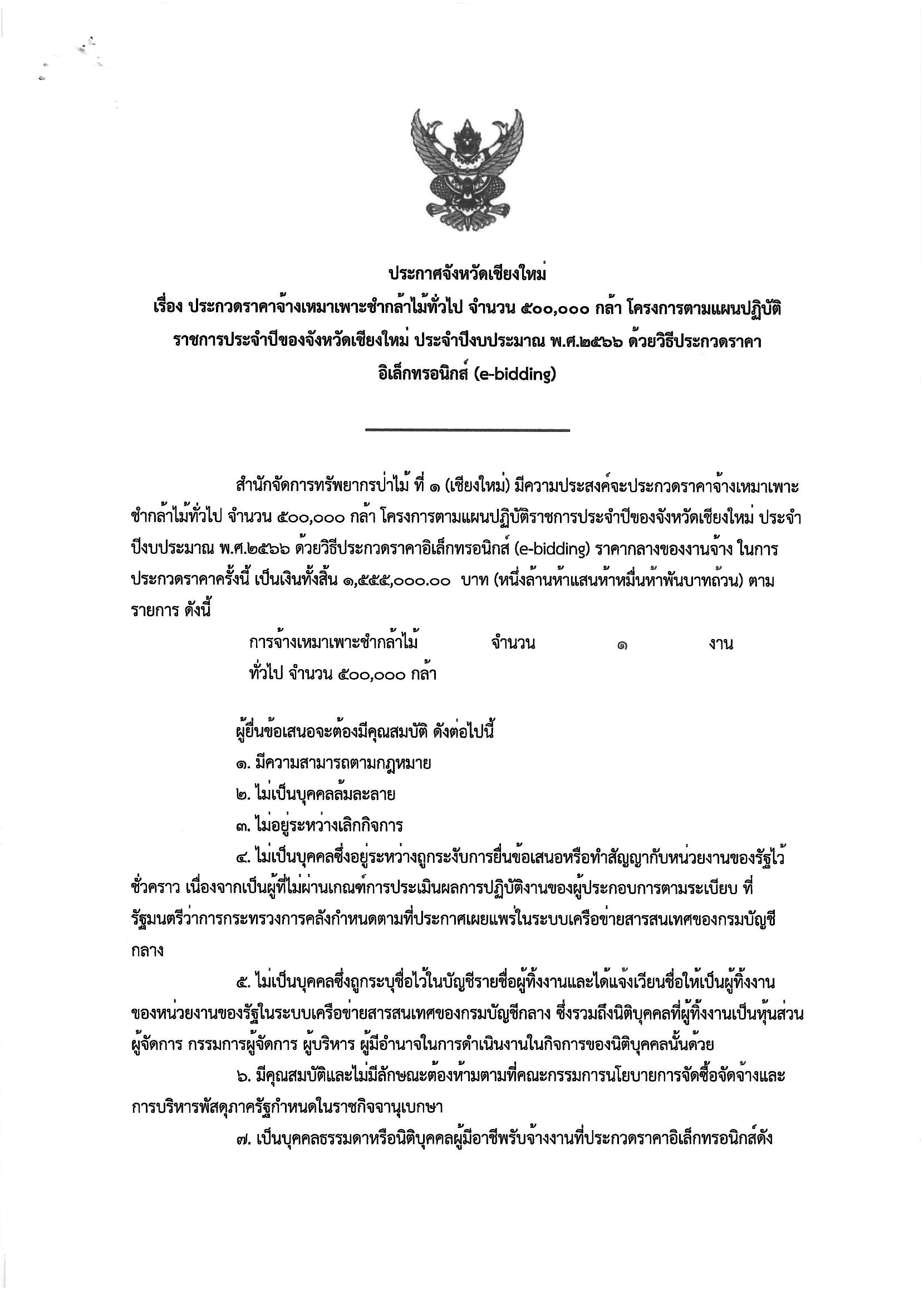ประกาศจังหวัดเชียงใหม่ เรื่อง ประกวดรา คาจ้างเหมาเพาะชำกล้าไม้ทั่วไป จำนวน ๕00,000 กล ้า โครงการตามแผนปฏิบัติราชการประจำปีของจ ังหวัดเขียงใหม่ ประจำปีงบประมาณ พ.ศ.๒๕๖๖ ด ้วยวิธีประกวดราคาอิเล็กทรอนิกส์ (e-bidding) 23 พฤษภาคม 2023 by mailposter แชร์สิ่งนี้:Tweet