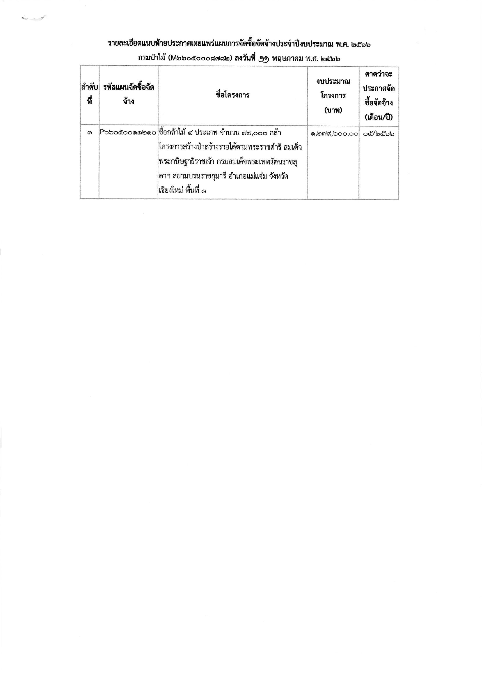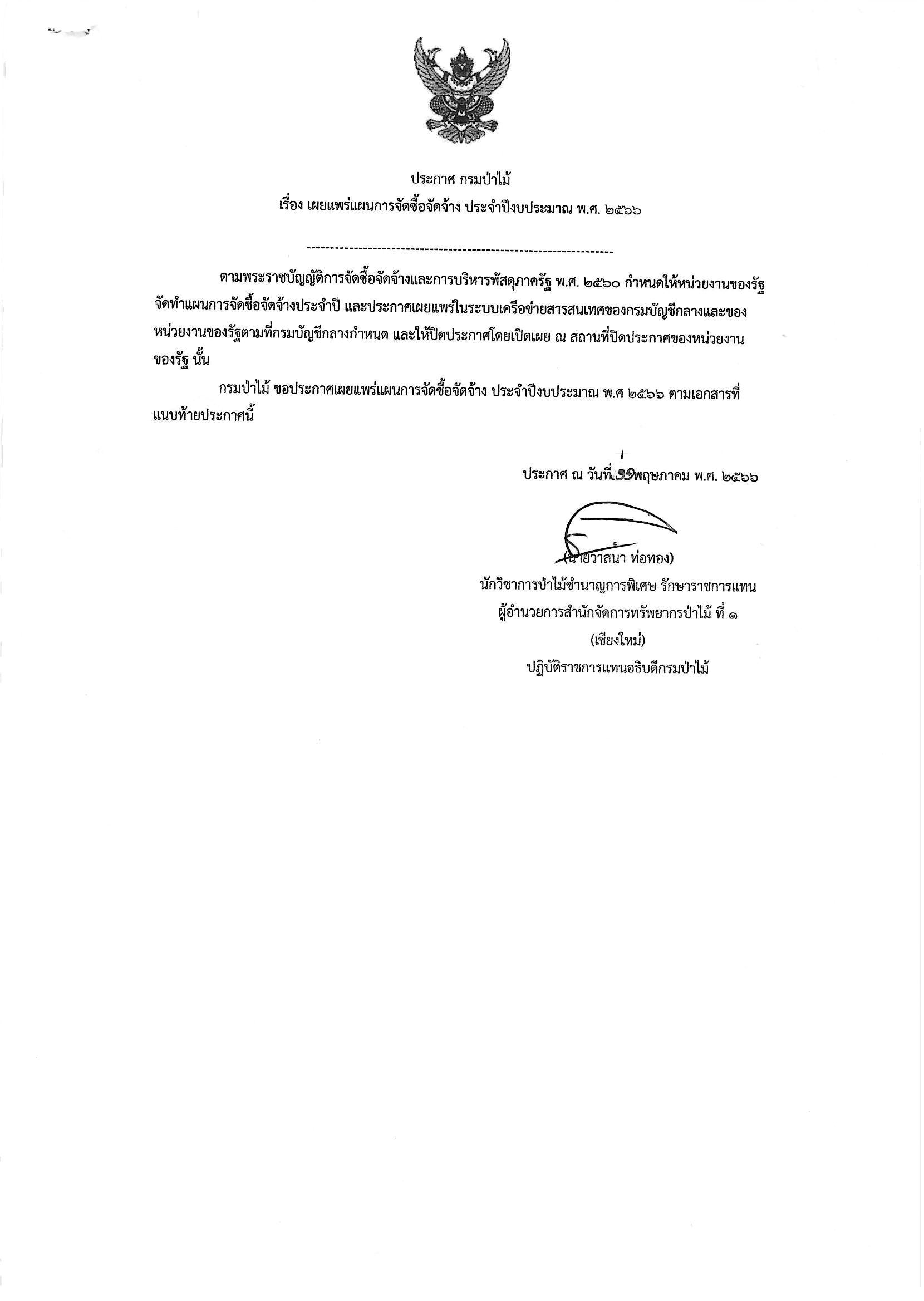 ประกาศ กรมป่าไม้ เรื่อง เผยแพร่แผนการจ ัดซื้อจัดจ้าง ประจำปีงบประมาณ พ.ศ. ๒๕๖๖