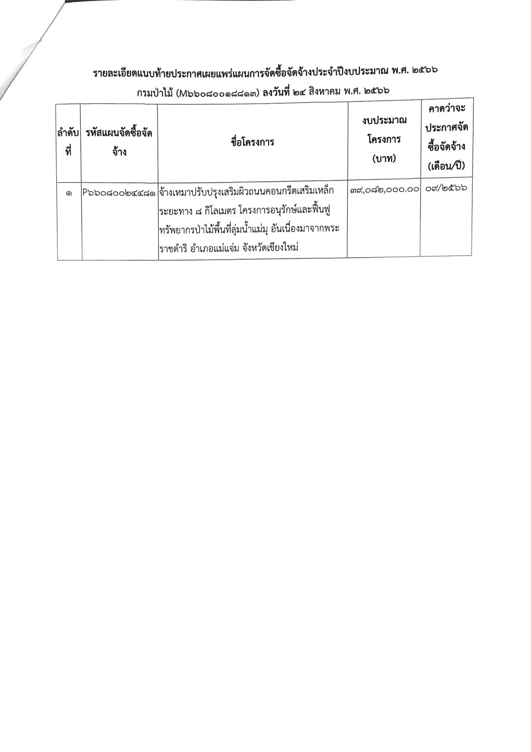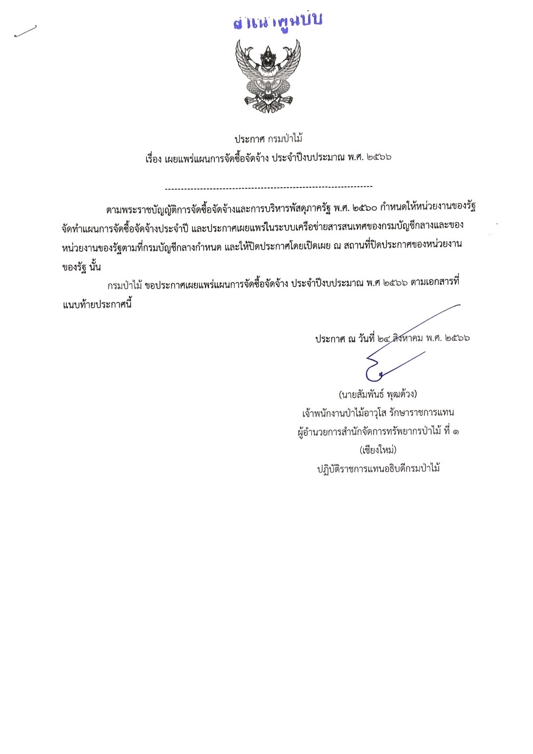 ประกาศ กรมป่าไม้ เรื่อง เผยแพร่แผนการจ ัดซื้อจัดจ้าง ประจำปีงบประมาณ พ.ศ. ๒๕๖๖