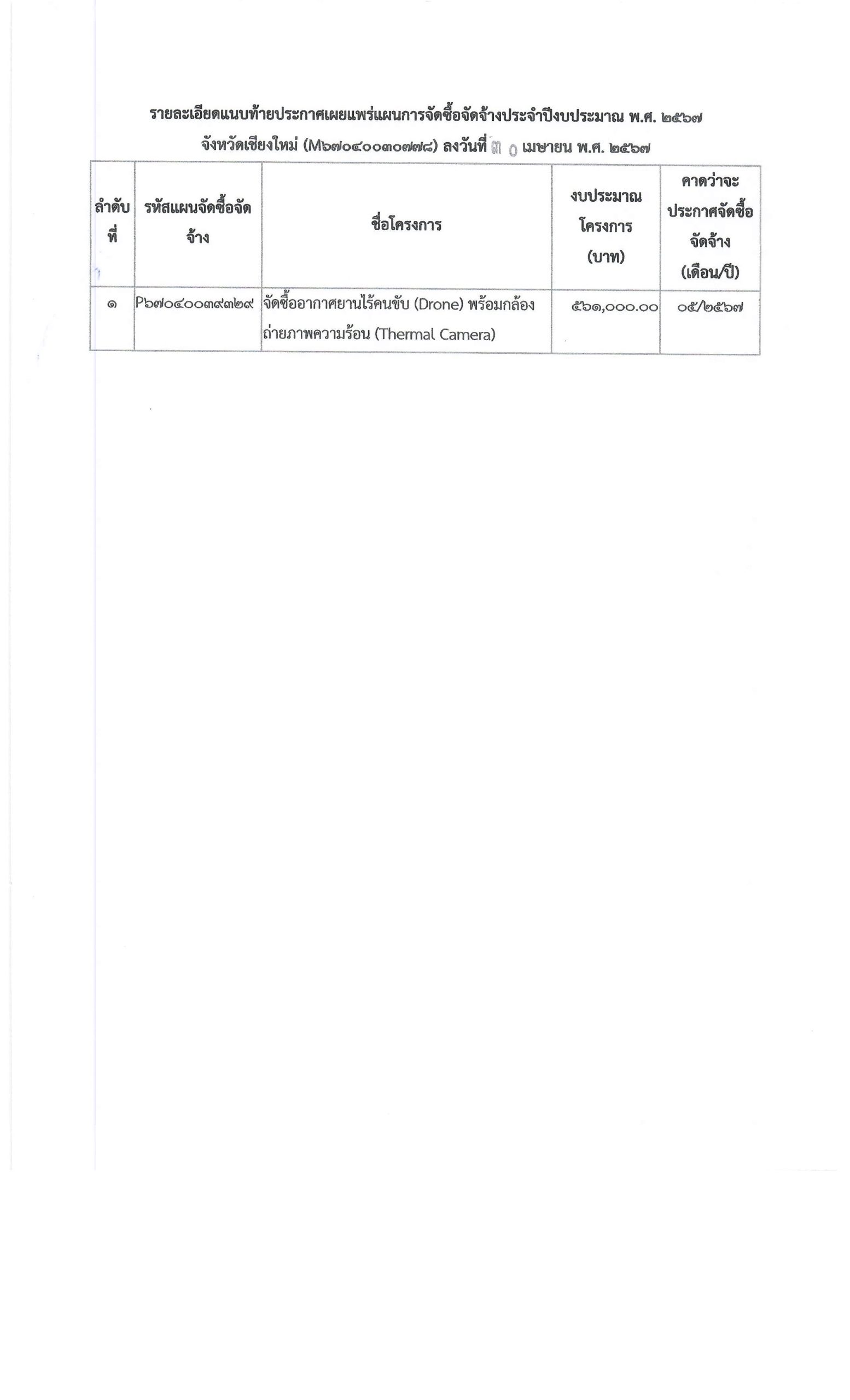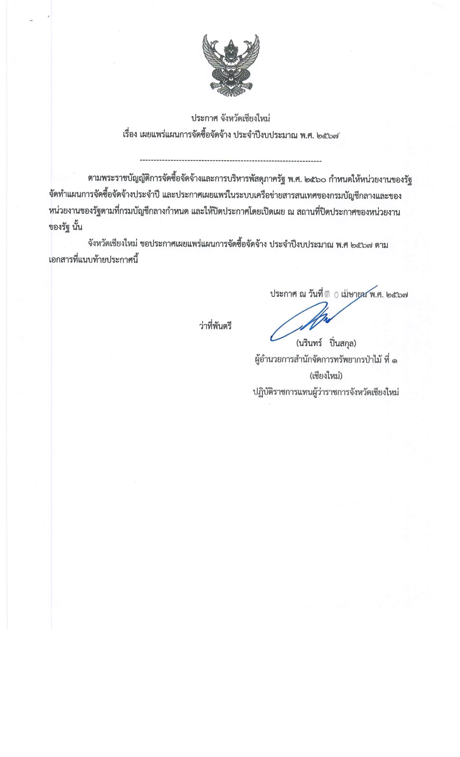 ประกาศ จังหวัดเชียงใหม่ เรื่อง เผยแพร่แ ผนการจัดซื้อจัดจ้าง ประจำปีงบประมาณ พ.ศ. ๒ ๕๖๗