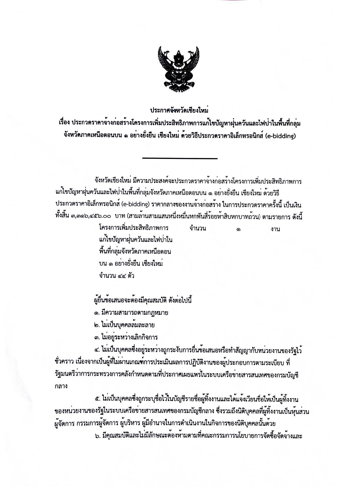 ประกาศจังหวัดเชียงใหม่ เรื่อง ประกวดรา คาจ้างก่อสร้างโครงการเพิ่มประสิทธิภาพการ แก้ไขปัญหาฝุ่นควันและไฟป่าในพื้นที่กลุ่ม จังหวัดภาคเหนือตอนบน ๑ อย่างยั่งยืน เชียงใ หม่ ด้วยวิธีประกวดราคาอิเล็กทรอนิกส์ (e-bidding) 30 กันยายน 2024 by mailposter แชร์สิ่งนี้:Tweet
