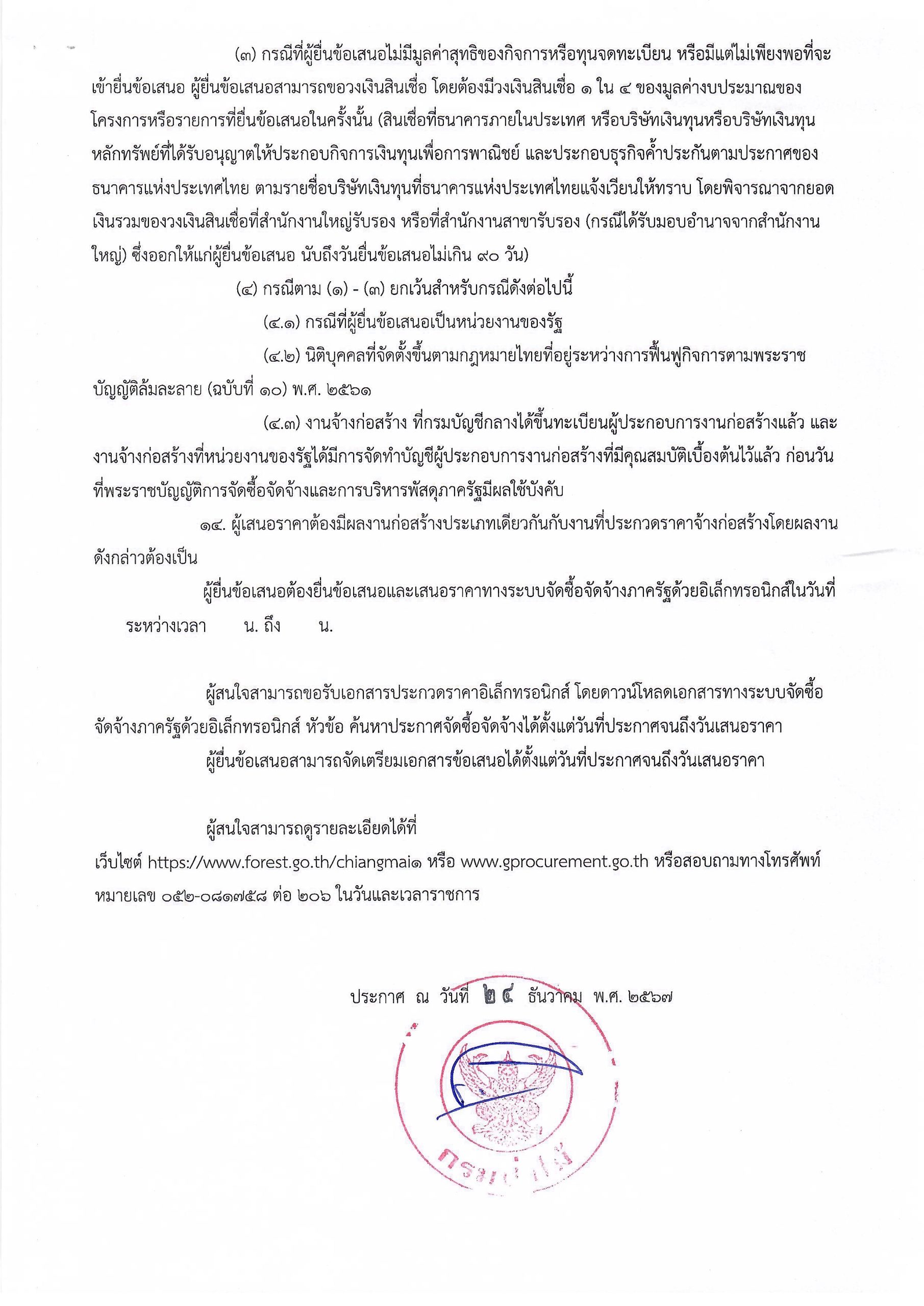 ประกาศกรมป่าไม้ เรื่อง ประกวดราคาจ้างก ่อสร้างเรือนเพาะชำกล้าไม้แบบเปิด ขนาด ๔๐x๔ ๐ เมตร ของสถานีเพาะชำกล้าไม้ฮอด ตำบลบ้านต าล อำเภอฮอด จังหวัดเชียงใหม่ จำนวน ๑ แห่ง ด ้วยวิธีประกวดราคาอิเล็กทรอนิกส์ (e-bidding) 24 ธันวาคม 2024 by mailposter แชร์สิ่งนี้:Tweet