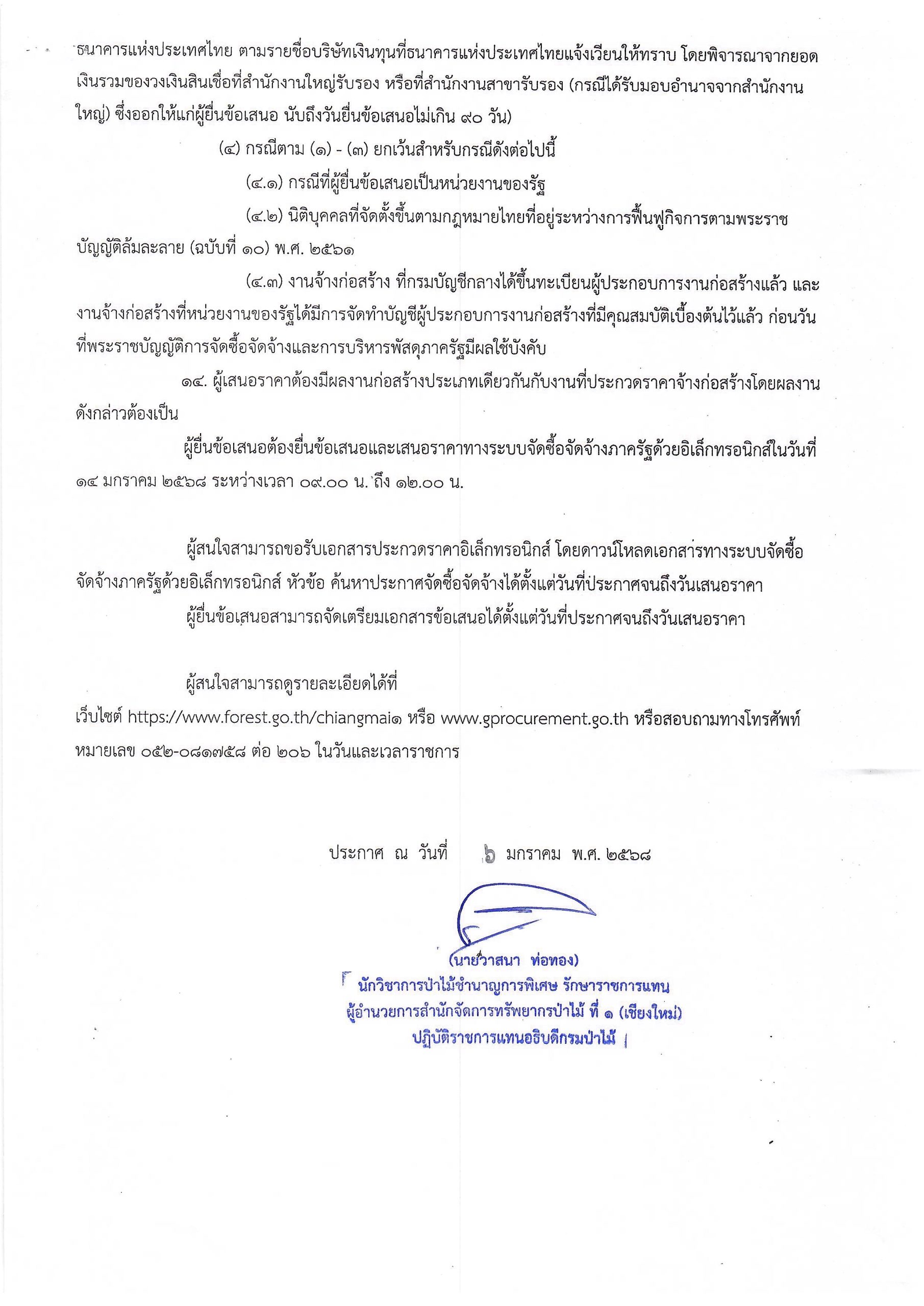 ประกาศกรมป่าไม้ เรื่อง ประกวดราคาจ้างก ่อสร้างเรือนเพาะชำกล้าไม้แบบเปิด ขนาด ๔๐x๔ ๐ เมตร ของสถานีเพาะชำกล้าไม้ฮอด ตำบลบ้านต าล อำเภอฮอด จังหวัดเชียงใหม่ จำนวน ๑ แห่ง ด ้วยวิธีประกวดราคาอิเล็กทรอนิกส์ (e-bidding) 7 มกราคม 2025 by mailposter แชร์สิ่งนี้:Tweet