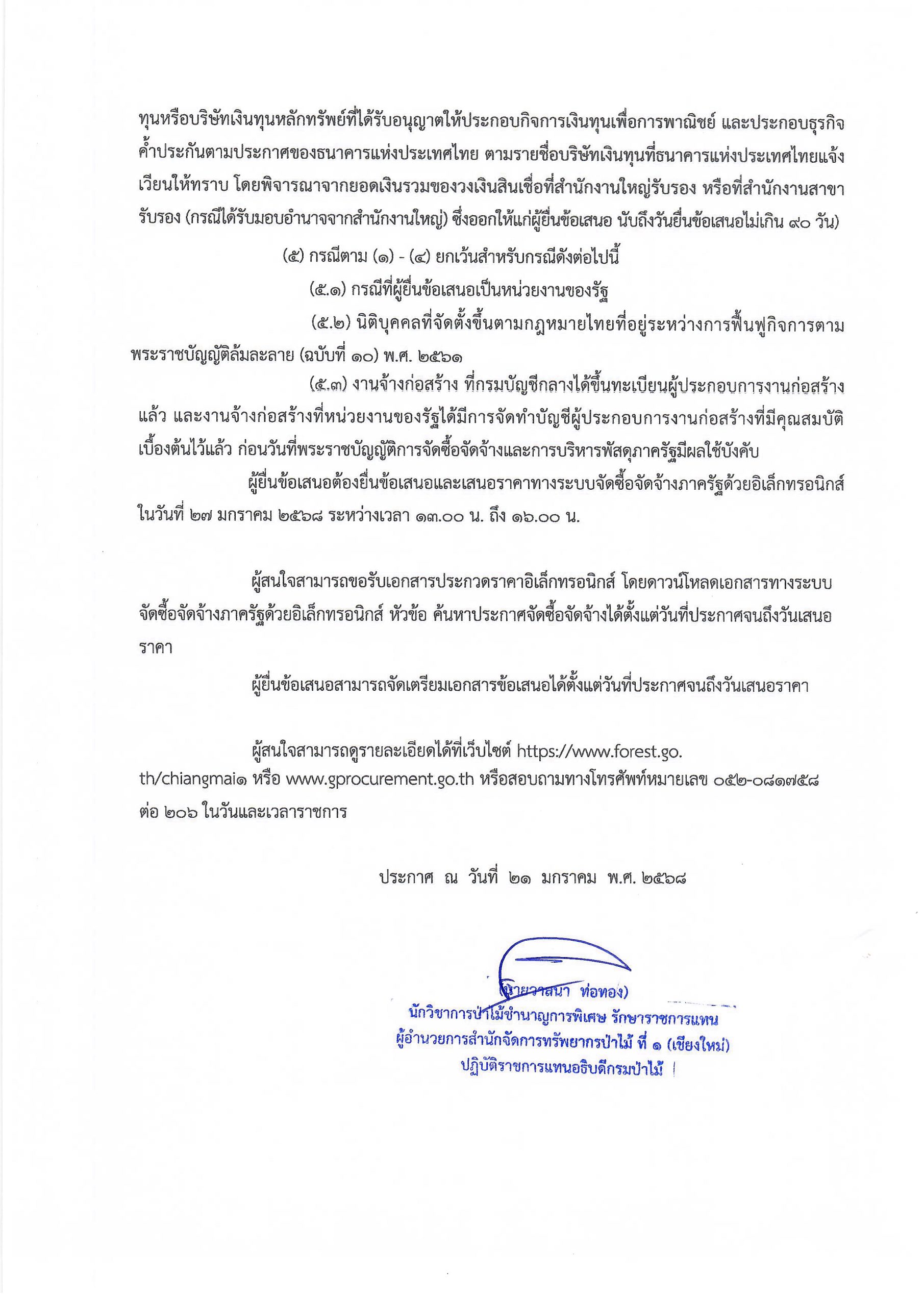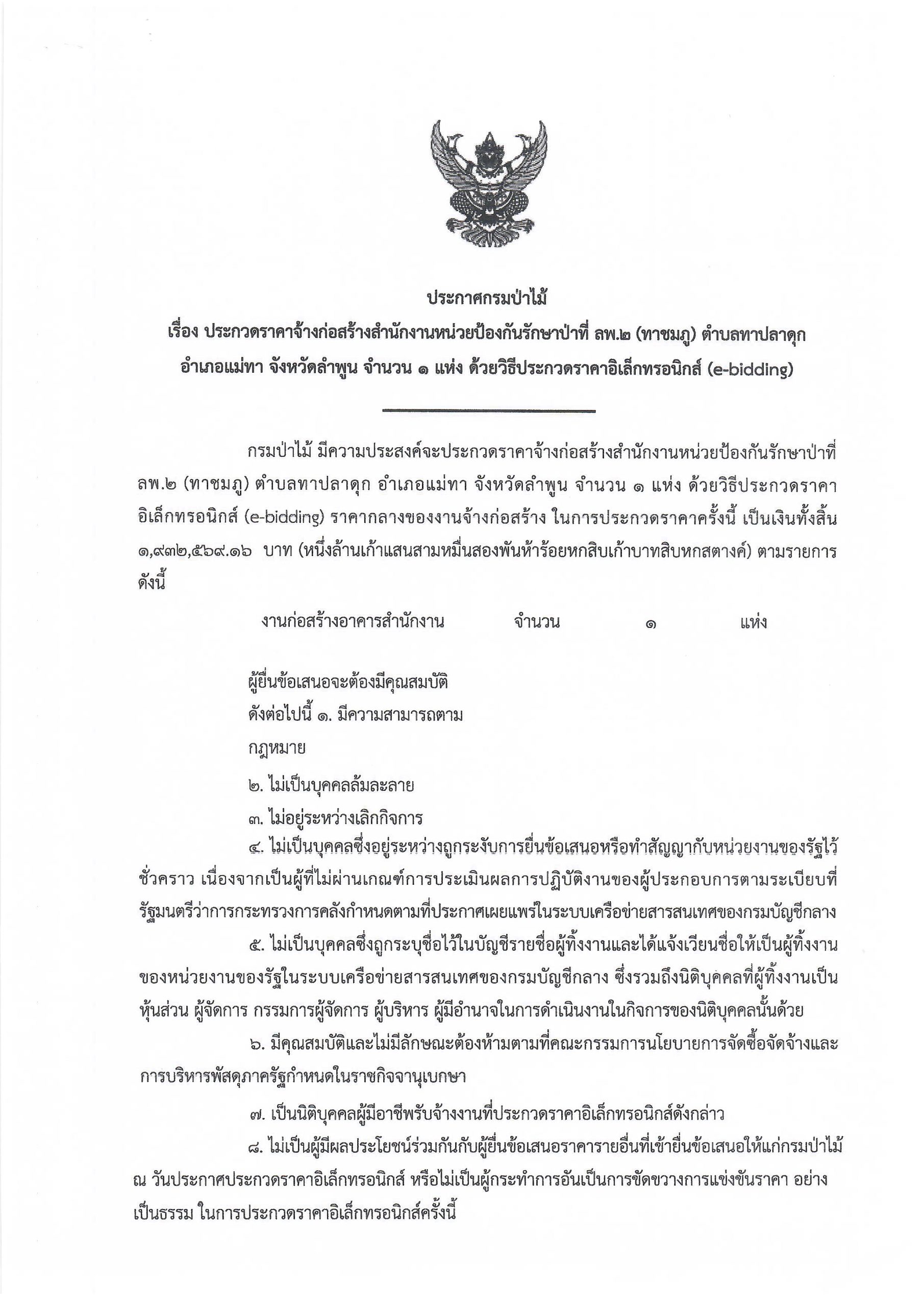 ประกาศกรมป่าไม้ เรื่อง ประกวดราคาจ้างก ่อสร้างสำนักงานหน่วยป้องกันรักษาป้าที่ ล พ.๒ (ทาชมภู) ตำบลทาปลาดุก อำเภอแม่ทา จังหวัด ลำพูน จำนวน ๑ แห่ง ด้วยวิธีประกวดราคาอิเล็ กทรอนิกส์ (e-bidding) 21 มกราคม 2025 by mailposter แชร์สิ่งนี้:Tweet