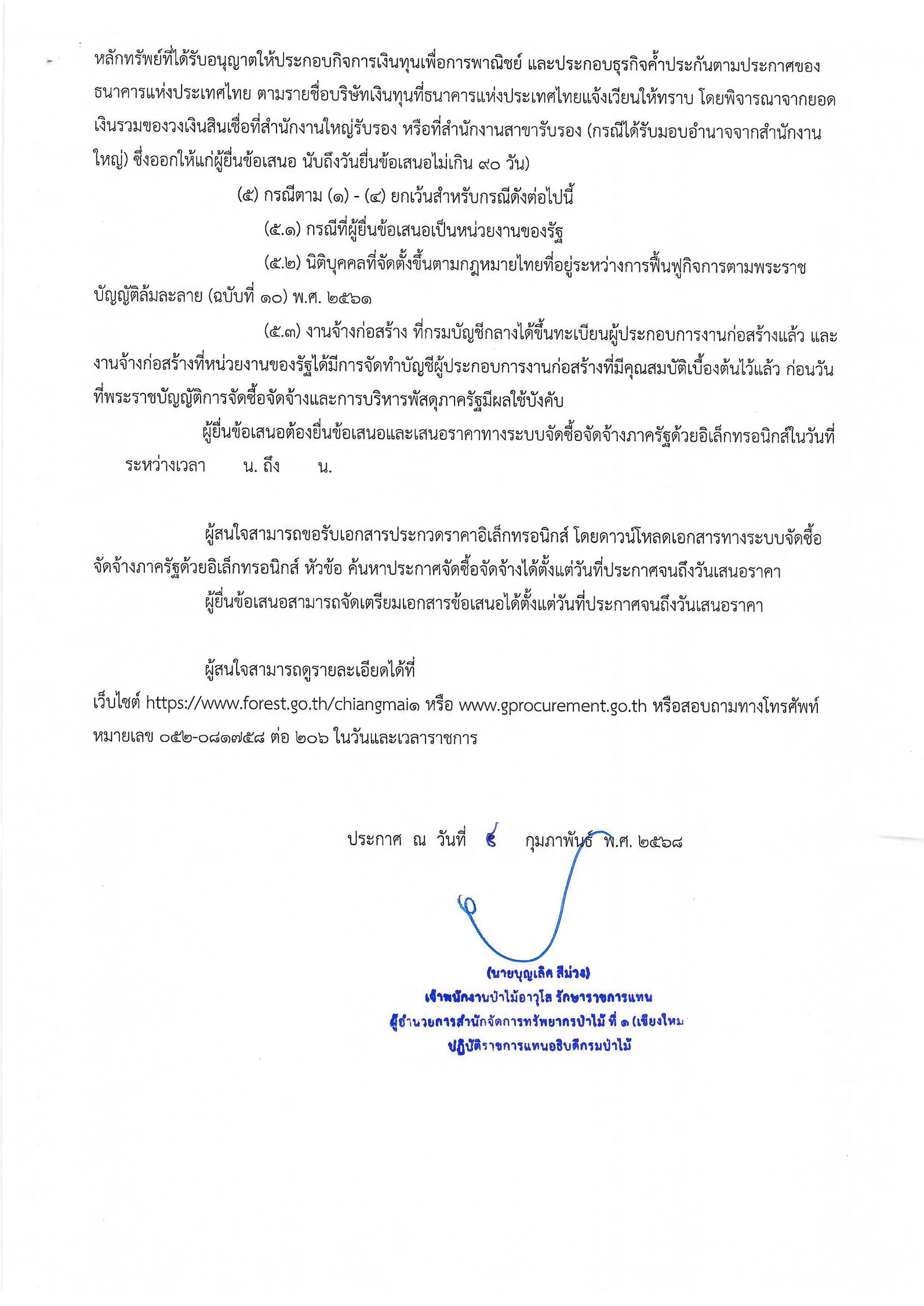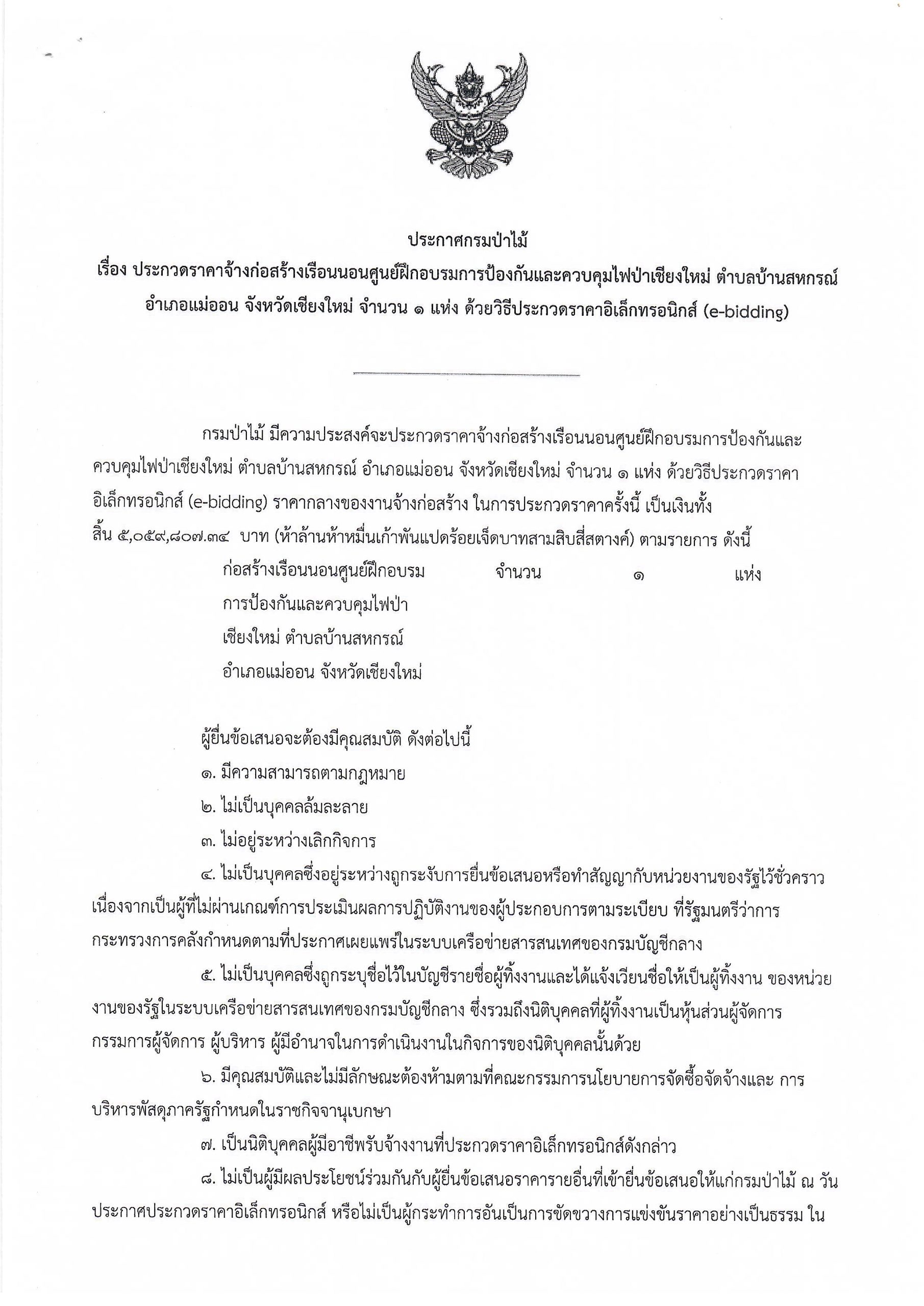 ประกาศกรมป่าไม้ ประกวดราคาจ้างก่อสร้าง เรือนนอนศูนย์ฝึกอบรมการป้องกันและควบคุมไ ฟป่าเชียงใหม่ ตำบลบ้านสหกรณ์ อำเภอแม่ออน จังหวัดเชียงใหม่ จำนวน ๑ แห่ง ด้วยวิธีประก วดราคาอิเล็กทรอนิกส์ (e-bidding) 5 กุมภาพันธ์ 2025 by mailposter แชร์สิ่งนี้:Tweet