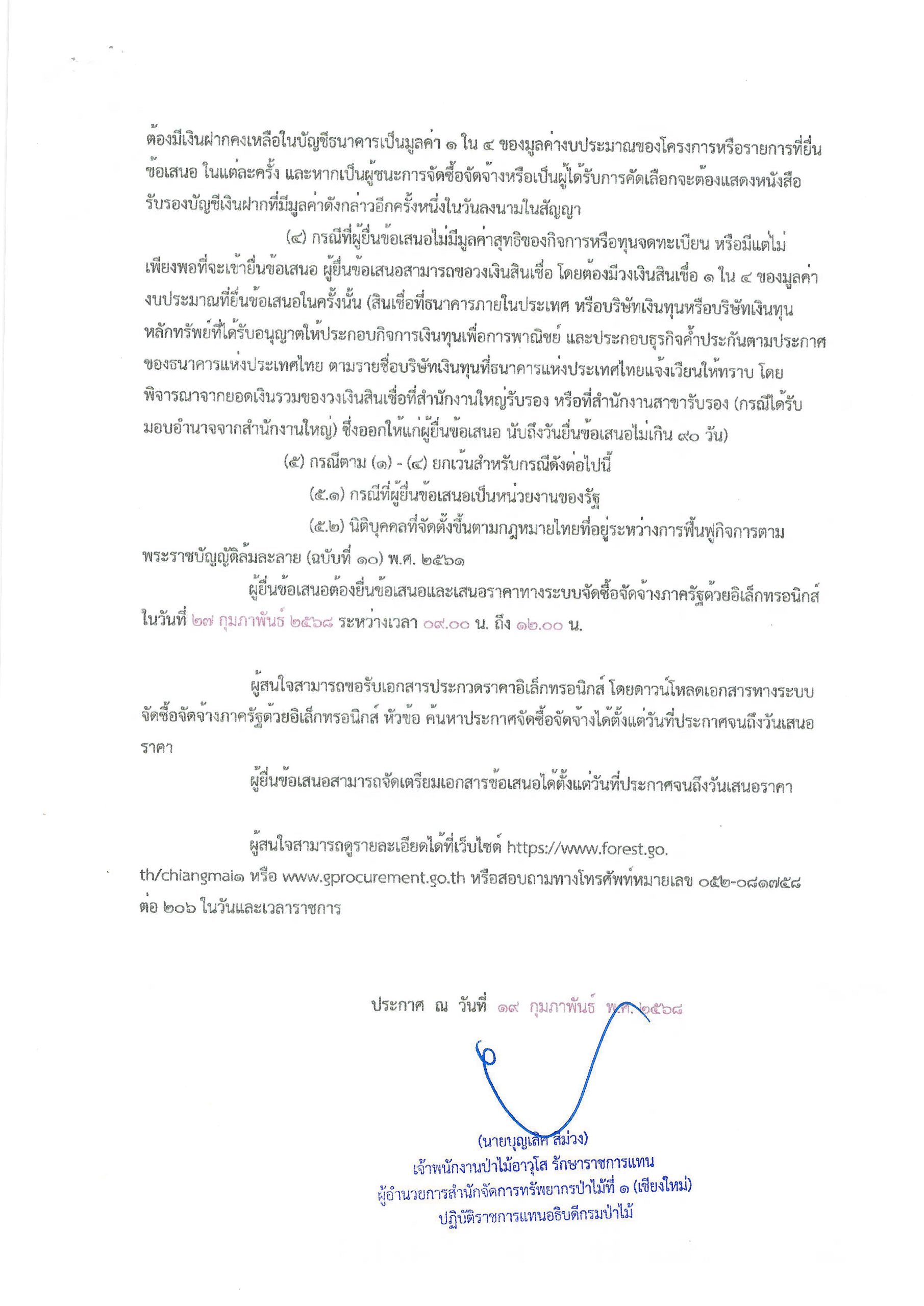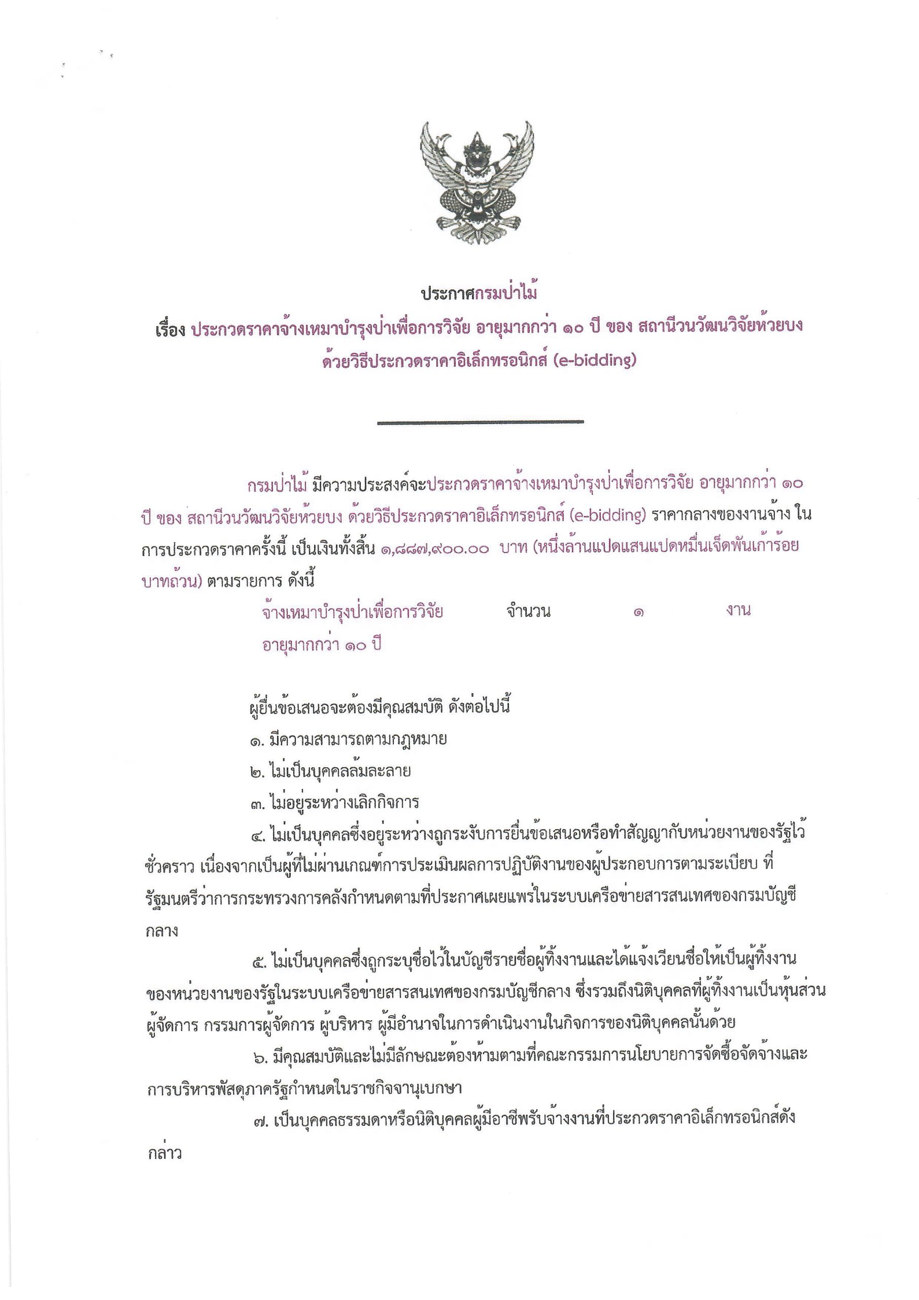 ประกาศกรมป่าไม้ เรื่อง ประกวดราคาจ้างเ หมาบำรุงป่าเพื่อการวิจัย อายุมากกว่า ๑๐ ปี ของ สถานีวนวัฒนวิจัยห้วยบงด้วยวิธีประกวด ราคาอิเล็กทรอนิกส์ (e-bidding) 19 กุมภาพันธ์ 2025 by mailposter แชร์สิ่งนี้:Tweet