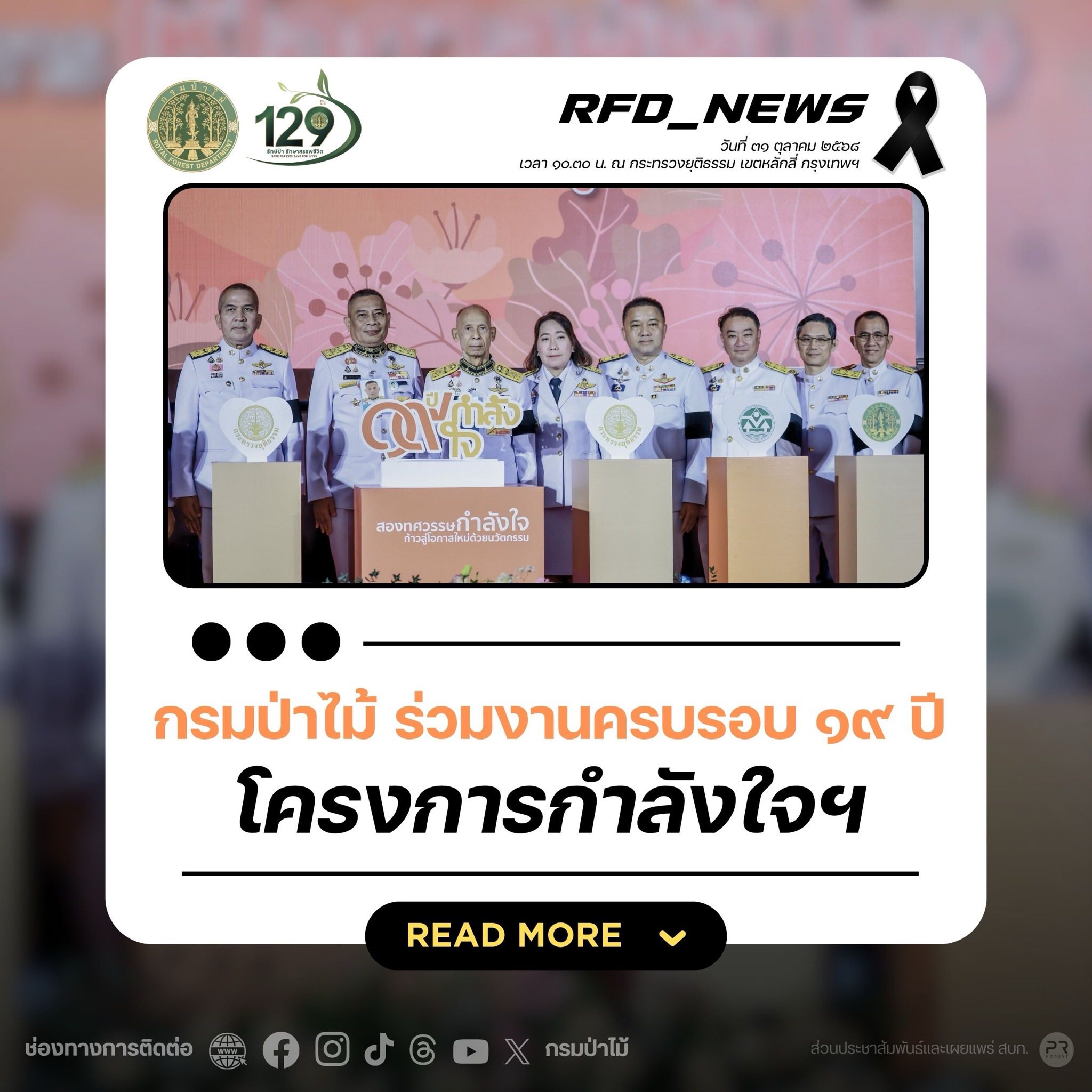 นายอำนาจ สุสุทธิ ผู้ตรวจราชการกรมป่าไม้ ได้รับมอบหมายจากอธิบดีกรมป่าไม้ พร้อมด้วยนางสาวช่อแพร ทินพรรณ์ ผู้อำนวยการส่วนส่งเสริมและพัฒนาตามแนวพระราชดำริ สำนักโครงการพระราชดำริและกิจการพิเศษ ร่วมงานครบรอบ ๑๙ ปี โครงการกำลังใจในพระดำริพระเจ้าหลานเธอ พระองค์เจ้าพัชรกิติยาภา “๒ ทศวรรษกำลังใจ ก้าวสู่โอกาสใหม่ด้วยนวัตกรรม” โดยมี พลอากาศเอก สมคิด สุขบาง กรมวังผู้ใหญ่ประจำพระองค์ ๙๐๘ รองประธานคณะกรรมการกองทุนกำลังใจในพระดำริพระเจ้าหลานเธอ พระองค์เจ้าพัชรกิติยาภา เป็นประธาน โดยมี พลตำรวจโท รุทธพล เนาวรัตน์ รัฐมนตรีว่าการกระทรวงยุติธรรม นางพงษ์สวาท นีละโยธิน ปลัดกระทรวงยุติธรรม ผู้บริหารกระทรวงยุติธรรม ผู้บริหารหน่วยงานที่เกี่ยวข้อง เข้าร่วมกิจกรรม