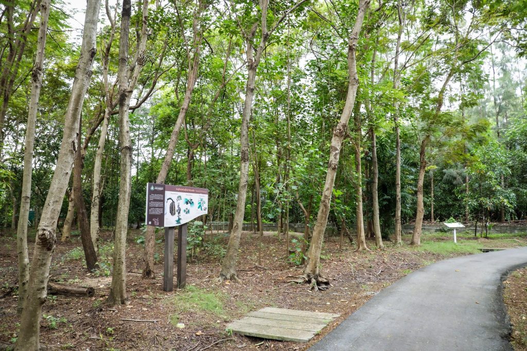 ทั้งนี้ รองอธิบดีกรมป่าไม้ร่วมบรรยายให้คณะผู้เข้าศึกษาดูงานว่า กรมป่าไม้ได้ฟื้นฟูพื้นที่ “คุ้งบางกะเจ้า” ตามแนวพระราชดำริ สมเด็จพระกนิษฐาธิราชเจ้า กรมสมเด็จพระเทพรัตนราชสุดา ฯ สยามบรมราชกุมารี โดยการปลูกต้นไม้ในพื้นที่ต่าง ๆ ที่กรมป่าไม้ดูแล เพื่อให้เกิดความร่มรื่นสร้างสิ่งแวดล้อมที่ดีให้กับพื้นที่ เน้นการปลูกต้นไม้ที่ให้ประโยชน์เป็นพืชอาหาร พืชสมุนไพร นอกจากนี้ กรมป่าไม้ยังได้ทำความร่วมมือกับหน่วยงานต่าง ๆ ในการพัฒนาฟื้นฟูพื้นที่ร่วมกับชุมชน สร้างความเข้มแข็งให้กับชุมชนจัดตั้งเป็นกลุ่ม เช่น กลุ่มหิ่งห้อย กลุ่มป่าเกดน้อมเกล้า ทำเรื่องป่าชุมชนเมือง กลุ่มสวนรุกขชาติ กลุ่มท่องเที่ยววิถีชุมชน กลุ่มอนุรักษ์และท่องเที่ยวเชิงนิเวศ โครงการ OUR Khung BangKachao ที่ทำร่วมกับมูลนิธิชัยพัฒนาและภาคเอกชน ร่วมพัฒนาพื้นที่ให้เป็นพื้นที่สีเขียว