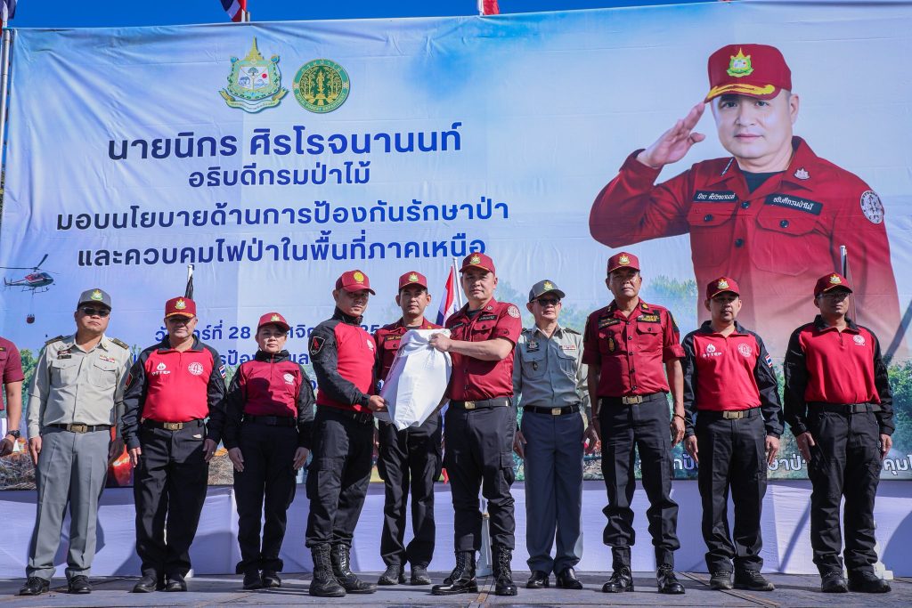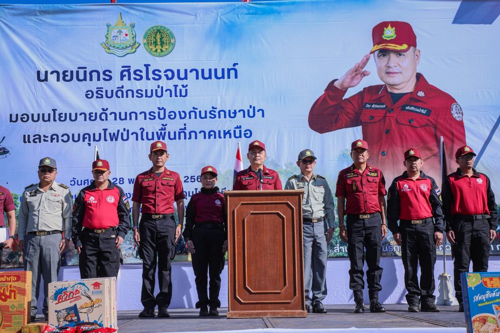 นายนิกร ศิรโรจนานนท์ อธิบดีกรมป่าไม้ ลงพื้นที่ศูนย์ฝึกอบรมการป้องกันและควบคุมไฟป่าเชียงใหม่ มอบแนวทางการณ์ปฏิบัติงานด้านการป้องกันรักษาป่าและควบคุมไฟป่าในพื้นที่ภาคเหนือ โดยมีนายโกสิทธิ์ นิลรัตน์ ผู้อำนวยการสำนักป้องรักษาป่าและควบคุมไฟป่า ผู้อำนวยการสำนักฯ พื้นที่ภาคเหนือ หัวหน้าหน่วยฯ พร้อมกำลังเจ้าหน้าที่ป้องกันรักษาป่าและชุดปฏิบัติการพิเศษควบคุมไฟป่า (เหยี่ยวไฟ) เข้าร่วมรับฟังแนวทางในการปฏิบัติหน้าที่ ในโอกาสนี้ อธิบดีกรมป่าไม้เป็นประธานในพิธีการมอบเข็มเชิดชูเกียรติ “รักษ์ป่า รักแผ่นดิน” สำหรับผู้ปฏิบัติงานด้านการอนุรักษ์ทรัพยากรป่าไม้ พร้อมตรวจเยี่ยมกำลังพล และมอบสิ่งของเพื่อเป็นขวัญกำลังใจแก่เจ้าหน้าที่ปฏิบัติงานหน่วยป้องกันรักษาป่า และเจ้าหน้าที่ชุดปฏิบัติการพิเศษควบคุมไฟป่า (เหยี่ยวไฟ)