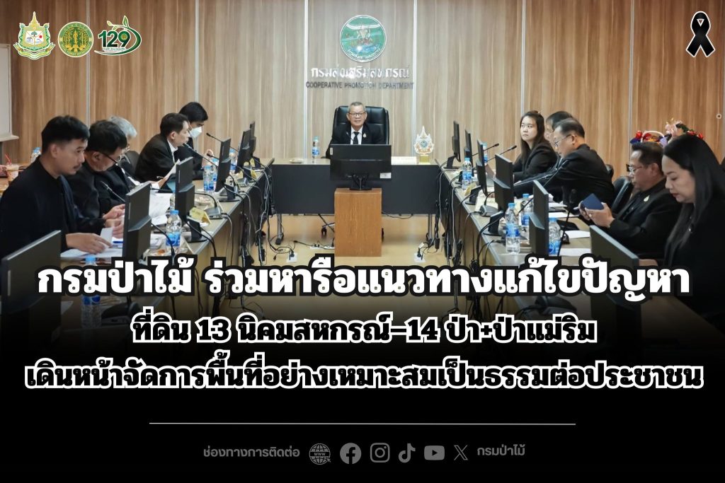 นายสุพจน์ ภู่รัตนโอภา รองอธิบดีกรมป่าไม้ ได้รับมอบหมายจากอธิบดีกรมป่าไม้ ร่วมประชุมหารือแนวทางแก้ไขปัญหาพื้นที่ 13 นิคมสหกรณ์ 14 ป่า และป่าแม่ริม จังหวัดเชียงใหม่ โดยมีนายประวัติ แดงบรรจง รองอธิบดีกรมส่งเสริมสหกรณ์ เป็นประธานการประชุม โดยที่ประชุมได้รายงานความคืบหน้าการดำเนินงานตามมติคณะกรรมการนโยบายที่ดินแห่งชาติ (คทช.) ครั้งที่ 2/2568 ซึ่งกำหนดแนวทางสำคัญในการแก้ไขปัญหาการอยู่อาศัยและทำประโยชน์ในพื้นที่ดังกล่าว ทั้งการจัดทำข้อมูลสิทธิการถือครองที่ดิน การยกเลิกพื้นที่เป้าหมายเดิมภายใต้นโยบาย คทช. และการมอบหมายให้กระทรวงเกษตรและสหกรณ์ร่วมกับกระทรวงทรัพยากรธรรมชาติและสิ่งแวดล้อม พิจารณาหลักเกณฑ์และรูปแบบการจัดที่ดินทำกินที่เหมาะสม