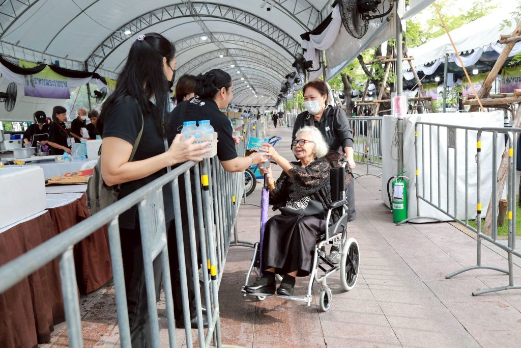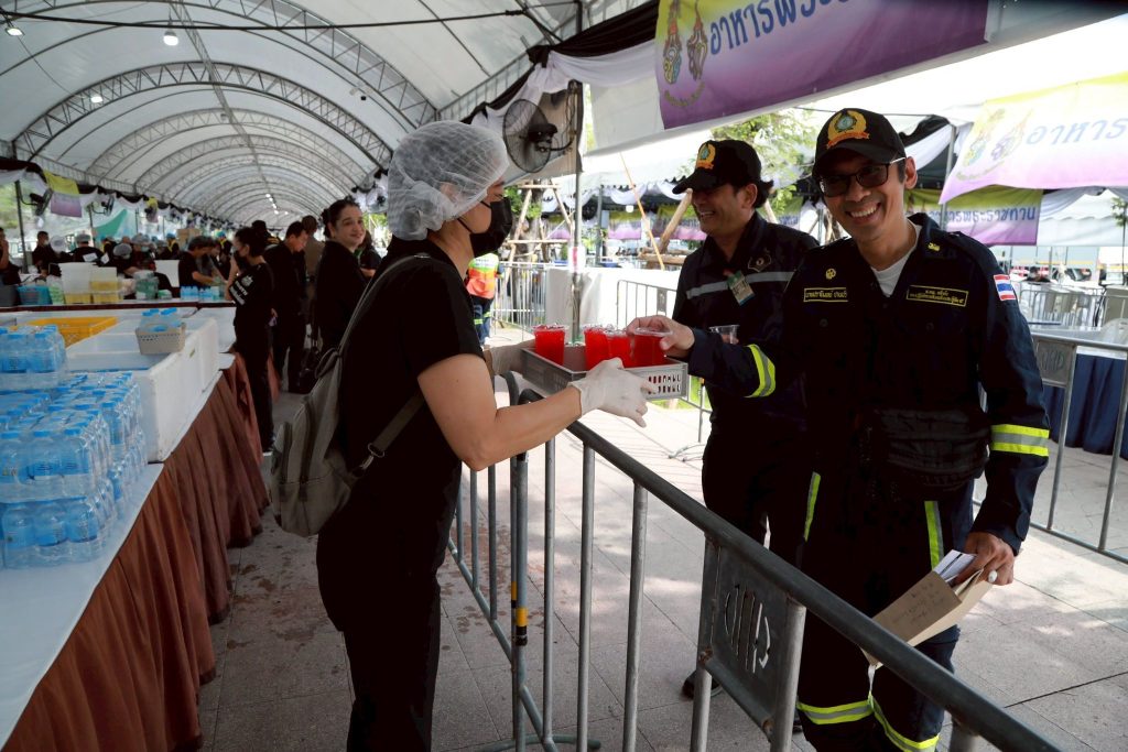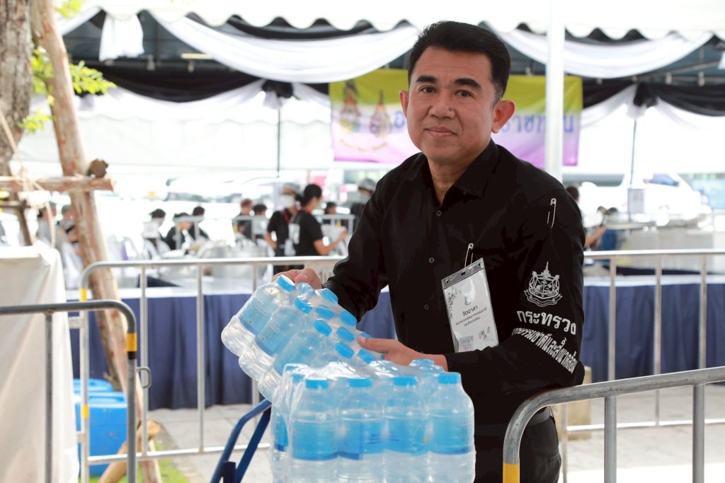 นายเผด็จ พวงจำปา ผู้อำนวยการสำนักบริหารกลาง นำคณะจิตอาสาข้าราชการ และเจ้าหน้าที่กรมป่าไม้ ปฏิบัติงานในนามกระทรวงทรัพยากรธรรมชาติและสิ่งแวดล้อม ร่วมกับศูนย์อำนวยการใหญ่จิตอาสาพระราชทาน เพื่ออำนวยความสะดวกและบริการประชาชนที่เดินทางมาเข้าร่วมถวายสักการะพระบรมศพ สมเด็จพระนางเจ้าสิริกิติ์ พระบรมราชินีนาถ พระบรมราชชนนีพันปีหลวง ณ จุดบริการอาหารพระราชทาน และจุดบริการน้ำดื่มเพื่อประชาชน ด้วยสำนึกในพระมหากรุณาธิคุณอันหาที่สุดมิได้