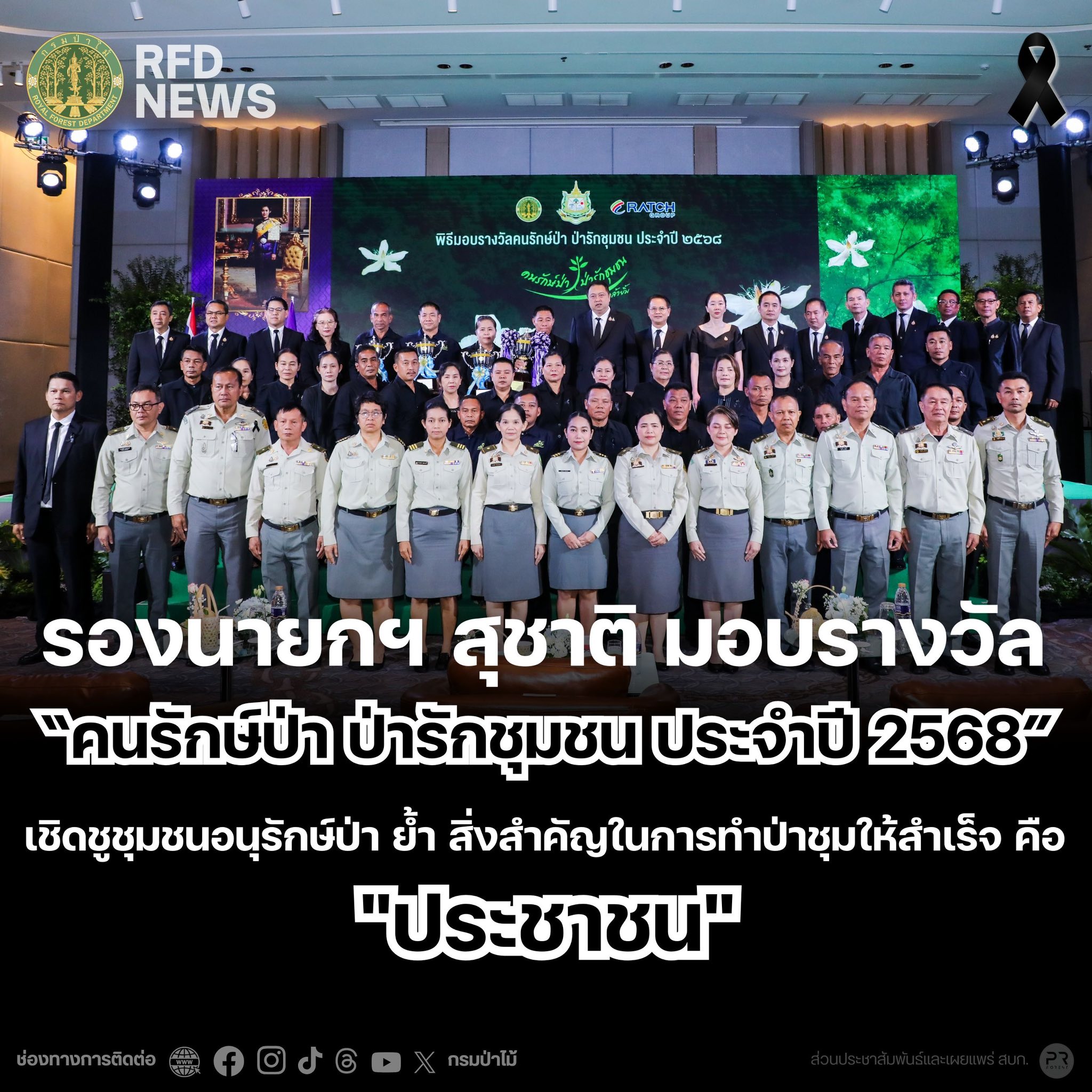 รองนายกฯ สุชาติ มอบรางวัล “คนรักษ์ป่า ป่ารักชุมชน ประจำปี 2568” เชิดชูชุมชนอนุรักษ์ป่า ย้ำ สิ่งสำคัญในการทำป่าชุมให้สำเร็จ คือ “ประชาชน”