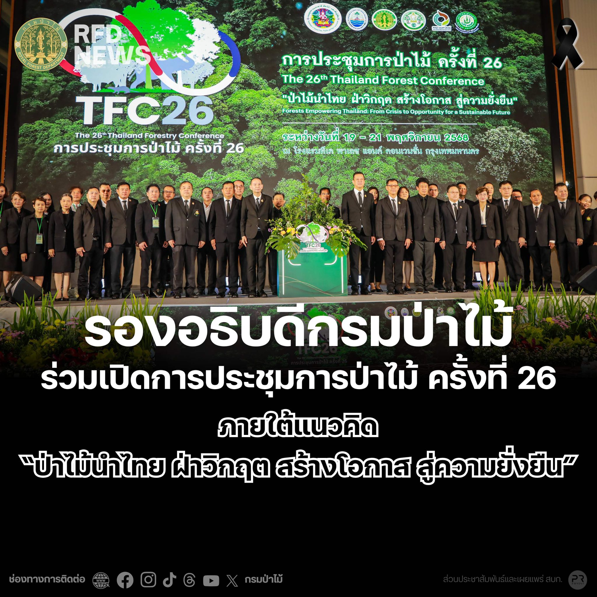 รองอธิบดีกรมป่าไม้ ร่วมเปิดการประชุมการป่าไม้ ครั้งที่ 26 ภายใต้แนวคิด “ป่าไม้นำไทย ฝ่าวิกฤต สร้างโอกาส สู่ความยั่งยืน”