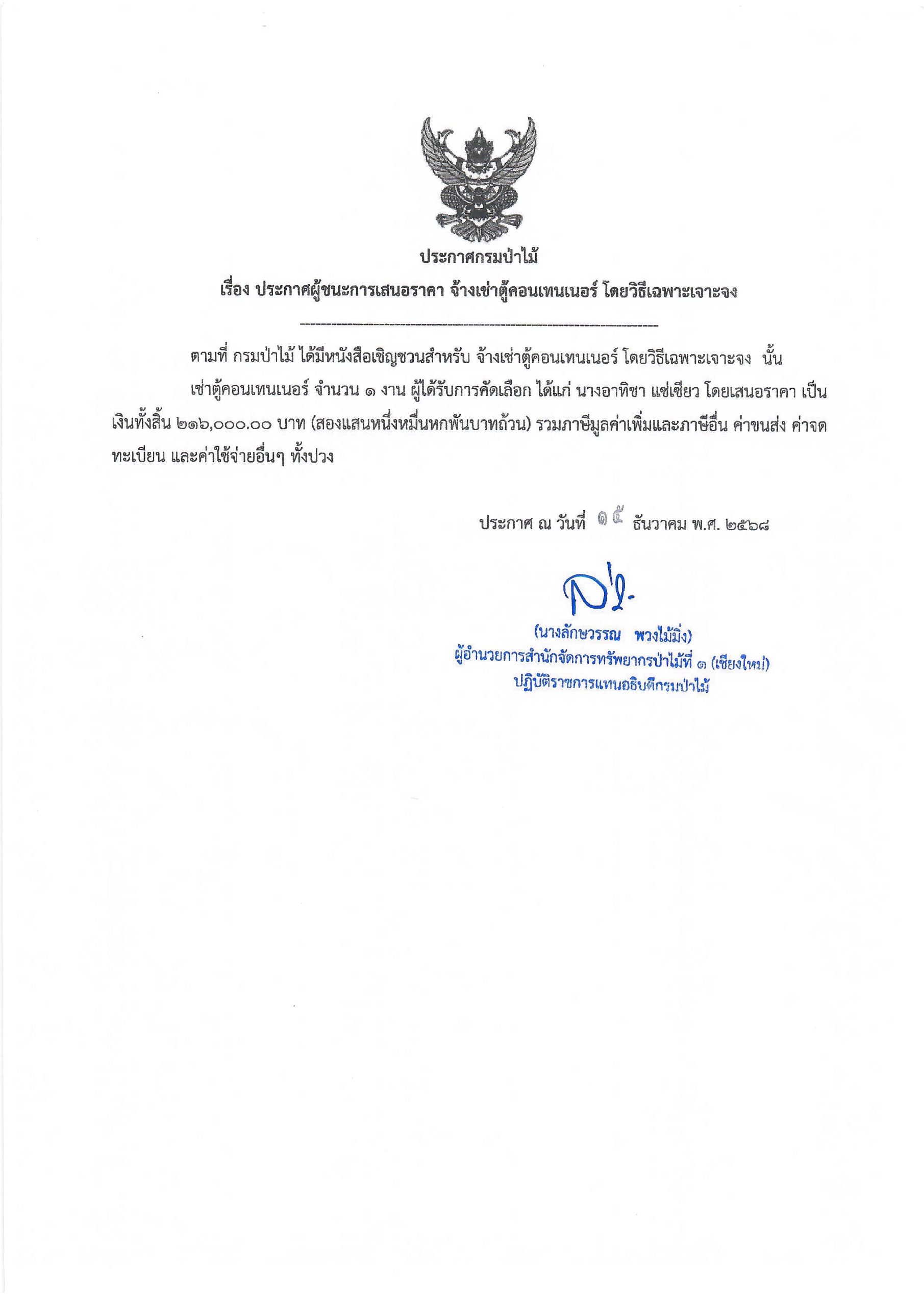 ประกาศกรมป่าไม้ เรื่อง ประกาศผู้ชนะการ เสนอราคา จ้างเช่าตู้คอนเทนเมอร์ โดยวิธีเ ฉพาะเจาะจง 15 ธันวาคม 2025 by mailposter แชร์สิ่งนี้:Tweet