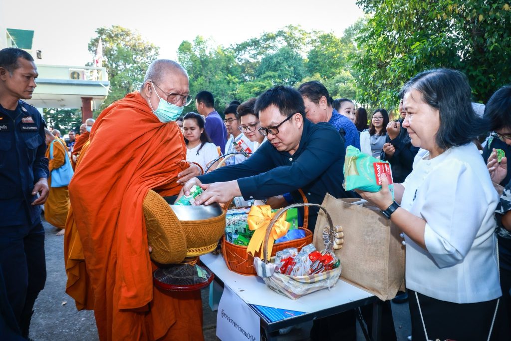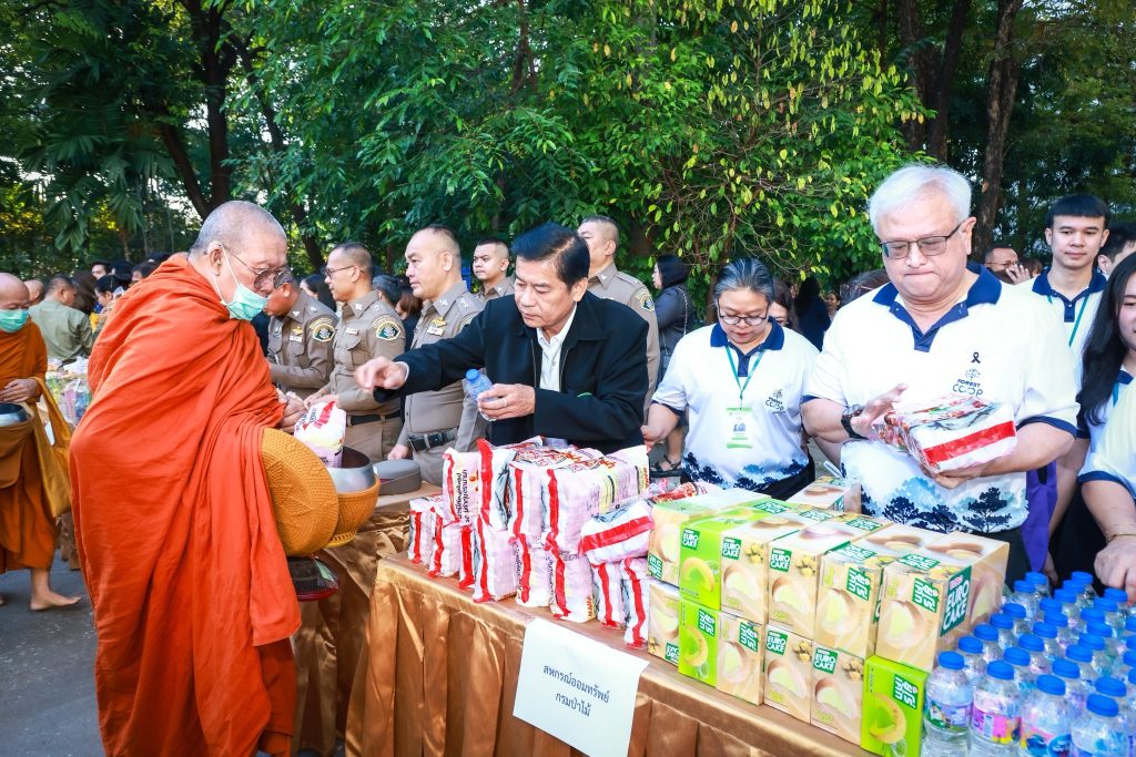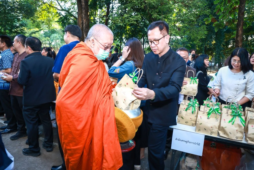 นายนิกร ศิรโรจนานนท์ อธิบดีกรมป่าไม้ พร้อมด้วยนายสุพจน์ ภู่รัตนโอภา นายพัฒน์พงษ์ สมิตติพัฒน์ รองอธิบดีกรมป่าไม้ ผู้บริหาร ข้าราชการ เจ้าหน้าที่กรมป่าไม้ ร่วมกิจกรรมทำบุญ-ใส่บาตร เนื่องในเทศกาลขึ้นปีใหม่ ประจำปีพุทธศักราช 2569 โดยในช่วงเช้า อธิบดีกรมป่าไม้นำคณะผู้บริหารสักการะพระพุทธไตรสสตวรรษานุสรณ์ พระพุทธรูปประจำกรมป่าไม้ สักการะพระบรมราชานุสาวรีย์พระบาทสมเด็จพระปรมินทรมหาจุฬาลงกรณ์ พระจุลจอมเกล้าเจ้าอยู่หัว ตลอดจนสิ่งศักดิ์สิทธิ์ประจำกรมป่าไม้ จากนั้น อธิบดีกรมป่าไม้พร้อมคณะผู้บริหาร ร่วมถวายภัตตาหารเช้า รับศีล-รับพร ณ ห้องประชุม 1 ชั้น 2 และร่วมทำบุญ-ใส่บาตรแด่พระสงฆ์ 33 รูป บริเวณด้านหน้าอาคารเทียมคมกฤส