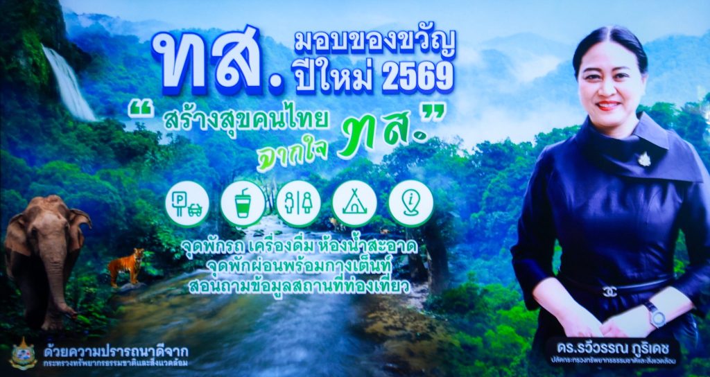 กระทรวงทรัพยากรธรรมชาติและสิ่งแวดล้อม กรมป่าไม้ และทุกหน่วยงานในสังกัด ทส. ขอเชิญชวนประชาชนร่วมเยี่ยมชมและใช้บริการของขวัญปีใหม่ 2569 ที่ ทส. ตั้งใจสร้างความสุขให้กับพี่น้องประชาชน ท่องเที่ยวธรรมชาติอย่างมีความรับผิดชอบ ใส่ใจสิ่งแวดล้อม เพื่อรักษาทรัพยากรที่สวยงามให้อยู่คู่กับประเทศไทยตลอดไป