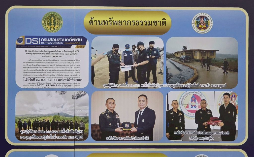 ทั้งนี้ นายกรัฐมนตรีได้เดินเยี่ยมชมการจัดแสดงผลการดำเนินงานของหน่วยงานต่าง ๆ ในส่วนของกรมป่าไม้ ได้สรุปผลการดำเนินงานด้านทรัพยากรธรรมชาติที่ผ่านมา ในการปฏิบัติงานของเจ้าหน้าที่กรมป่าไม้บูรณาการร่วมกับชุดปฏิบัติการ ศปป.4 กอ.รมน. ในการลงพื้นที่แก้ไขปัญหาการบุกรุกที่ดินของรัฐในพื้นที่ อ.เขาค้อ จ.เพชรบูรณ์ การประชุมครั้งนี้สะท้อนถึงความสำคัญของการบูรณาการการทำงานด้านความมั่นคงกับทุกหน่วยงานของรัฐ โดยกรมป่าไม้พร้อมนำแนวนโยบายและทิศทางที่ได้รับไปปรับแผนงานการอนุรักษ์และปกป้องทรัพยากรป่าไม้ พร้อมยกระดับความร่วมมือกับ กอ.รมน. และหน่วยงานที่เกี่ยวข้อง เพื่อให้การดำเนินงานด้านความมั่นคงและการจัดการทรัพยากรธรรมชาติเป็นไปอย่างมีประสิทธิภาพและเกิดผลอย่างเป็นรูปธรรมในระดับพื้นที่ต่อไป