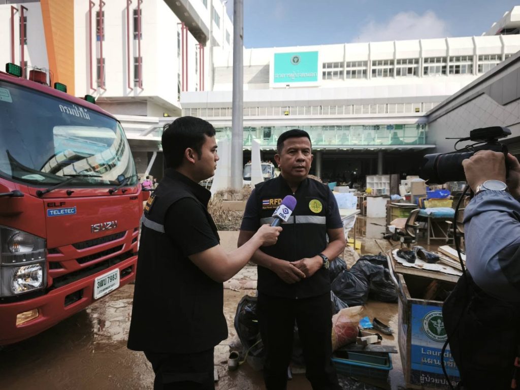 ทั้งนี้ ได้ให้สัมภาษณ์ผ่านทางสถานีโทรทัศน์แห่งประเทศไทย (NBT) โดยกล่าวถึงการเข้าพื้นที่ช่วยเหลือเพื่อเร่งฟื้นฟูสถานการณ์หลังน้ำลด ซึ่งนายสุชาติ ชมกลิ่น รองนายกรัฐมนตรีและรัฐมนตรีว่าการกระทรวงทรัพยากรธรรมชาติและสิ่งแวดล้อม ได้สั่งการให้หน่วยงาน ทส. เร่งให้ความช่วยเหลือเร่งด่วนหลังสถานการณ์น้ำท่วมคลี่คลายลงเพื่อให้ประชาชนสามารถกลับมาใช้ชีวิตได้ตามปกติ ภายใต้การดำเนินงานของศูนย์ปฏิบัติการส่วนหน้า ทส. “ทส. หนึ่งเดียว” ในวันนี้ กรมป่าไม้ได้บูรณาการร่วมกับกรมอุทยานแห่งชาติ สัตว์ป่า และพันธุ์พืช ทหารเรือ ตลอดจนกรมส่งเสริมการปกครองท้องถิ่น ในพื้นที่โรงพยาบาลหาดใหญ่ อ.หาดใหญ่ จ.สงขลา ในการนำกำลังพลเจ้าหน้าที่ป่าไม้พร้อมอุปกรณ์ทำความสะอาดโดยฉีดล้างทำความสะอาด นอกจากนี้จะได้นำกำลังพลเข้าไปตามสถานที่ต่าง ๆ เพื่อเร่งดำเนินการช่วยเหลือต่อไป