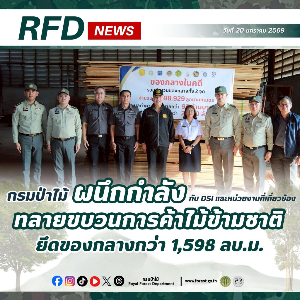 กรมป่าไม้ ผนึกกำลังกับ DSI และหน่วยงานที่เกี่ยวข้อง ทลายขบวนการค้าไม้ข้ามชาติ ยึดของกลางกว่า 1,598 ลบ.ม.
