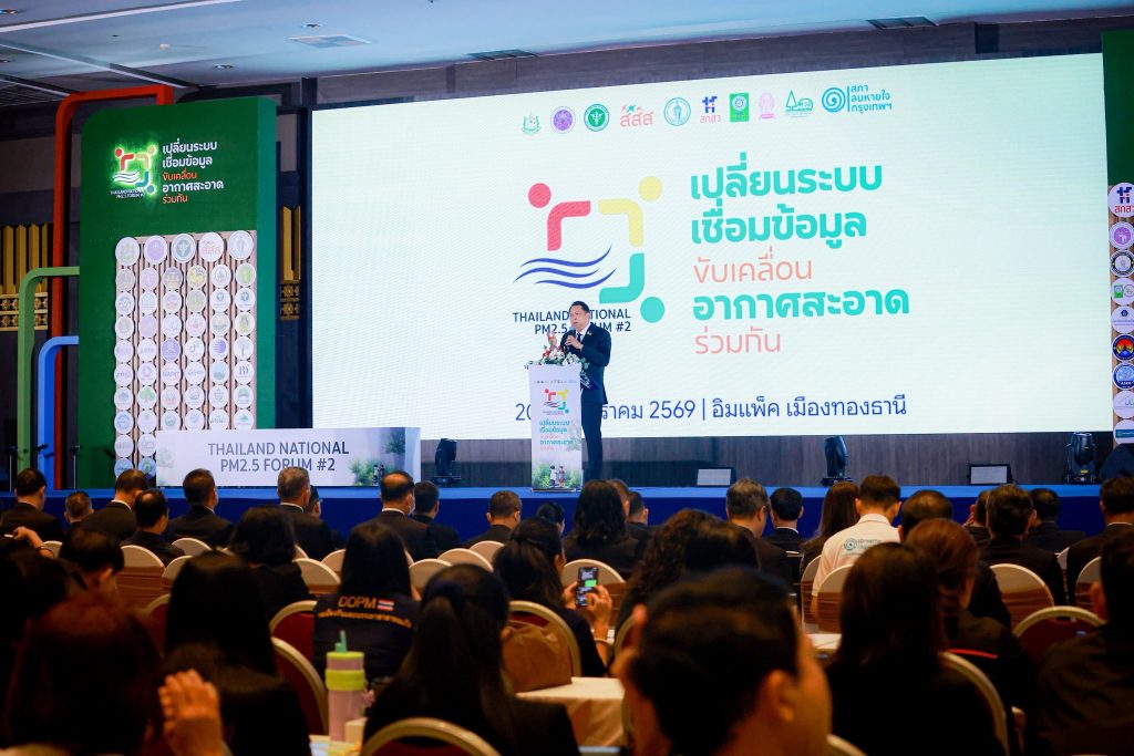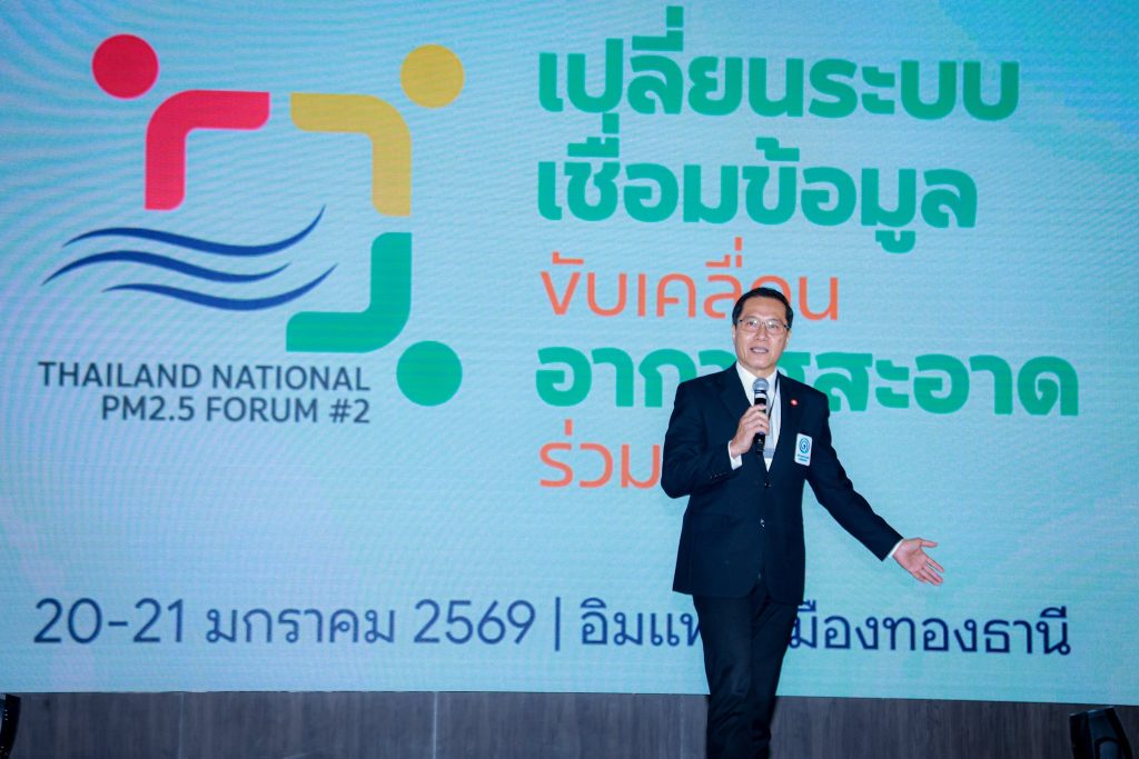 สำหรับการประชุม Thailand National PM2.5 Forum ครั้งที่ 2 นี้ จัดขึ้นระหว่างวันที่ 20-21 มกราคม 2569 เพื่อเป็นเวทีแห่งความร่วมมือระดับชาติที่เชื่อมโยง นักวิจัย ผู้กำหนดนโยบาย (ภาครัฐ) ภาคเอกชน ภาคประชาชน และภาคท้องถิ่น เพื่อขับเคลื่อนการแก้ปัญหาฝุ่นควัน PM2.5 อย่างเป็นระบบ อ้างอิงจากการแลกเปลี่ยนข้อมูลจริง องค์ความรู้ใหม่ที่ได้จากผลงานวิจัย วิทยาศาสตร์ เทคโนโลยี และเสียงของประชาชน ซึ่งจะสะท้อนให้เห็นว่าปัญหาฝุ่นควัน PM2.5 นี้ เป็น “ผลลัพธ์ของระบบที่ซับซ้อน” ที่เชื่อมโยงในหลายมิติทั้งสุขภาพ สิ่งแวดล้อม เศรษฐกิจ เกษตรกรรม อุตสาหกรรม การคมนาคม ต่างประเทศ การใช้พลังงาน ความมั่นคงของมนุษย์ และการเปลี่ยนแปลงเชิงระบบโครงสร้างของสังคม จึงเป็น หัวใจและจำเป็นอย่างยิ่ง โดยอาศัยการเปิดเผยข้อมูล (ระบบข้อมูลร่วม) การแลกเปลี่ยนความรู้ และการประสานความร่วมมือข้ามเขต ข้ามหน่วยงาน ข้ามพรมแดน พร้อมเปิดมุมมองใหม่ ๆ การมีส่วนร่วมของทุกภาคส่วนในการขับเคลื่อนสู่การหายใจที่สะอาดและปลอดภัยของทุกคน ภายใต้แนวคิด “เปลี่ยนระบบ เชื่อมข้อมูล ขับเคลื่อนอากาศสะอาดร่วมกัน”