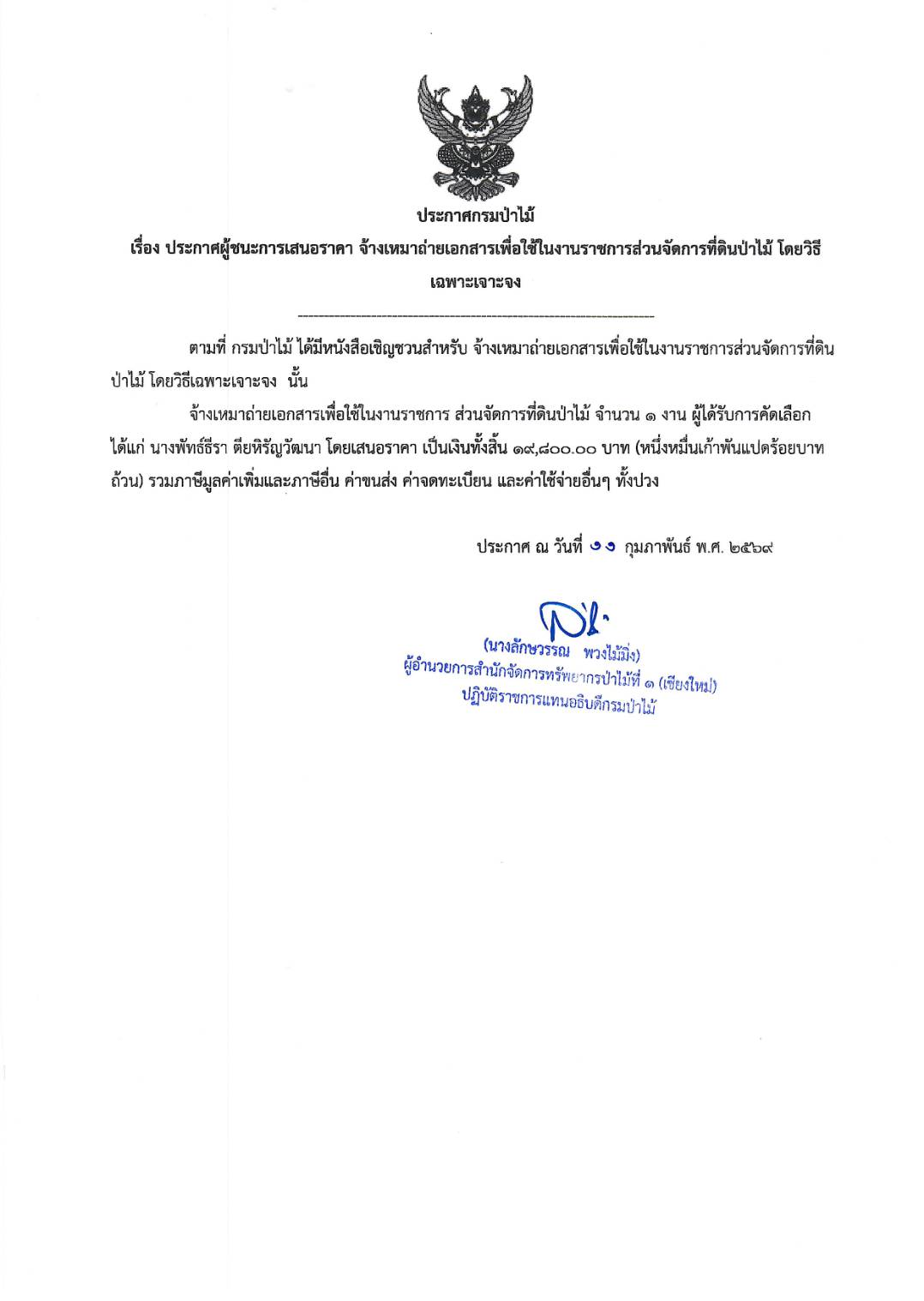 ประกาศกรมป่าไม้ เรื่อง ประกาศผู้ชนะการ เสนอราคา จ้างเหมาถ่ายเอกสารเพื่อใช้ในงาน ราชการส่วนจัดการที่ดินป่าไม้ โดยวิธีเฉพา ะเจาะจง 11 กุมภาพันธ์ 2026 by mailposter แชร์สิ่งนี้:Tweet