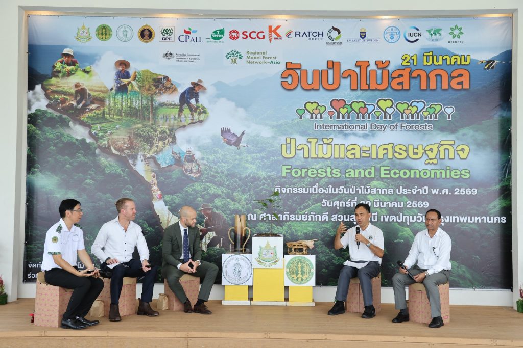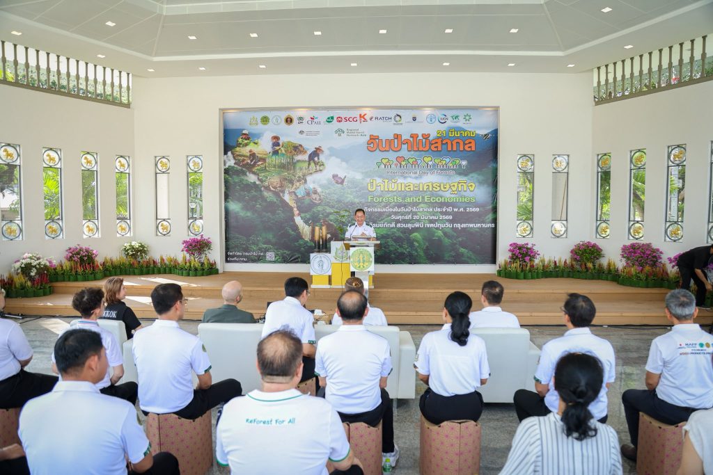 กรมป่าไม้ กระทรวงทรัพยากรธรรมชาติและสิ่งแวดล้อม จัดกิจกรรมเนื่องในวันป่าไม้สากล วันที่ 21 มีนาคม โดยในปี 2569 นี้ จัดภายใต้แนวคิด “ป่าไม้และเศรษฐกิจ Forests and Economies” โดยมี พล.ต.ต. นันทชาติ ศุภมงคล ที่ปรึกษารัฐมนตรีว่าการกระทรวงทรัพยากรธรรมชาติและสิ่งแวดล้อม นางเลิศลักษณ์ ลีลาเรืองแสง รองปลัดกรุงเทพมหานคร เป็นประธานร่วมในพิธีเปิด มีนายนิกร ศิรโรจนานนท์ อธิบดีกรมป่าไม้ นายพัฒน์พงษ์ สมิตติพัฒณ์ รองอธิบดีกรมป่าไม้ ผู้บริหารกรมป่าไม้ ผู้บริหารส่วนราชการในสังกัดกระทรวง ผู้แทนหน่วยงานภาคีเครือข่ายพันธมิตรด้านสิ่งแวดล้อม นักเรียนและประชาชนทั่วไป เข้าร่วมงาน