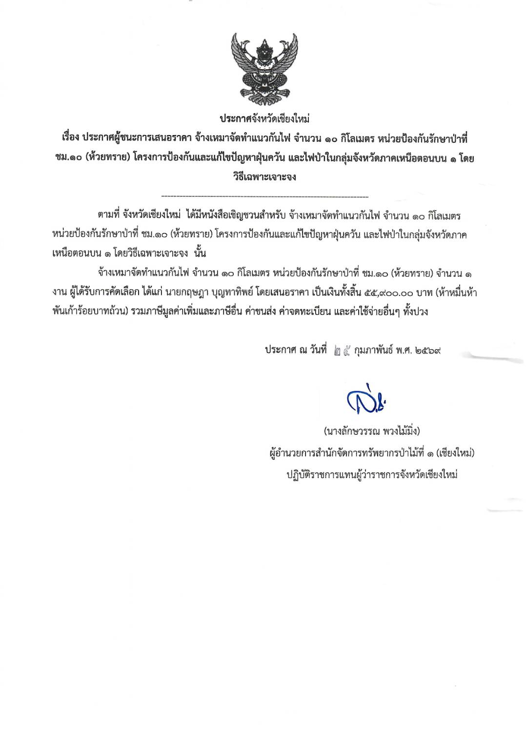 ประกาศผู้ชนะการเสนอราคา จ้างเหมาจัดทำ แนวกันไฟ จำนวน ๑๐ กิโลเมตร หน่วยป้องกันรัก ษาป่าที่ ชม.๑๐ (ห้วยทราย) โครงการป้องกันและ แก้ไขปัญหาฝุ่นควันและไฟป่าในกลุ่มจังหวัด ภาคหนือตอนบน ๑ โดยวิธีเฉพาะเจาะจง 5 มีนาคม 2026 by mailposter แชร์สิ่งนี้:Tweet