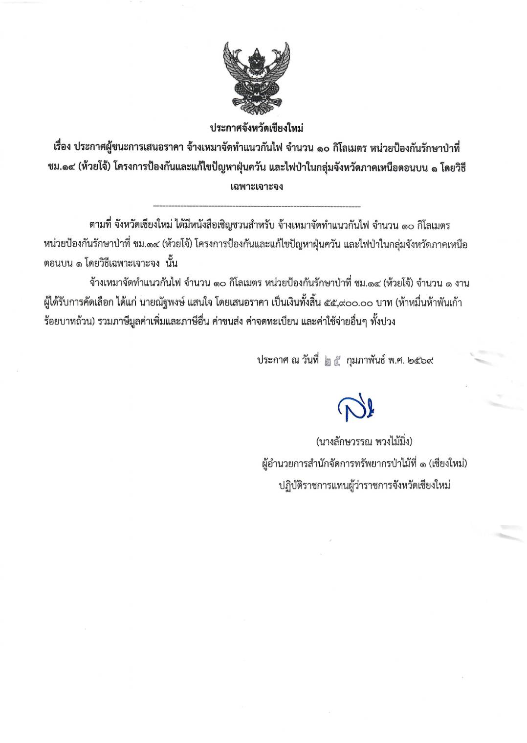 ประกาศผู้ชนะการเสนอราคา จ้างเหมาจัดทำ แนวกันไฟ จำนวน ๑๐ กิโลเมตร หน่วยป้องกันรัก ษาป่าที่ ชม.๑๔ (ห้วยโจ้) โครงการป้องกันและแ ก้ไขปัญหาฝุ่นควันและไฟป่าในกลุ่มจังหวัด ภาคหนือตอนบน ๑ โดยวิธีเฉพาะเจาะจง 5 มีนาคม 2026 by mailposter แชร์สิ่งนี้:Tweet