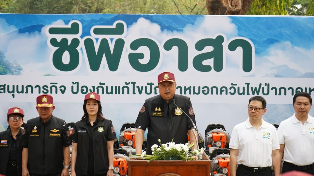 โดยการสนับสนุนสิ่งของแก่เจ้าหน้าที่ดับไฟป่า ภาคเหนือ ในครั้งนี้ ประกอบด้วย เครื่องเป่าลมสำหรับดับไฟป่า จำนวน 100 เครื่อง อุปกรณ์สำหรับสู้ไฟป่า อาทิ เป้น้ำยุทธวิธี ผ้าบัฟ รองเท้า ถุงมือ น้ำดื่ม เครื่องอุปโภคบริโภค พร้อมกันนี้ ยังได้มอบกองทุนประกันอาสาพิทักษ์ดับไฟป่า จำนวน 1 หมื่นนาย โดยมีตัวแทนกรมป่าไม้ กรมอุทยานแห่งชาติ สัตว์ป่า และพันธุ์พืช และหน่วยงานชุมชนภายใต้กระทรวงมหาดไทย เข้ารับมอบ ซึ่งการรับมอบสิ่งของในวันนี้ นับเป็นอีกวันหนึ่งที่มีความหมายอย่างยิ่งที่ทุกภาคส่วนได้มาร่วมกันแสดงพลังแห่งความร่วมมือ เพื่อสนับสนุนภารกิจการป้องกันและแก้ไขปัญหาหมอกควันไฟป่าในพื้นที่ภาคเหนือ และเจ้าหน้าที่อาสาดับไฟป่าทุกท่าน คือผู้ที่อยู่แนวหน้า ผู้เสียสละ ผู้ทุ่มเท และเป็นฮีโร่ ในการปฏิบัติหน้าที่สำคัญนี้