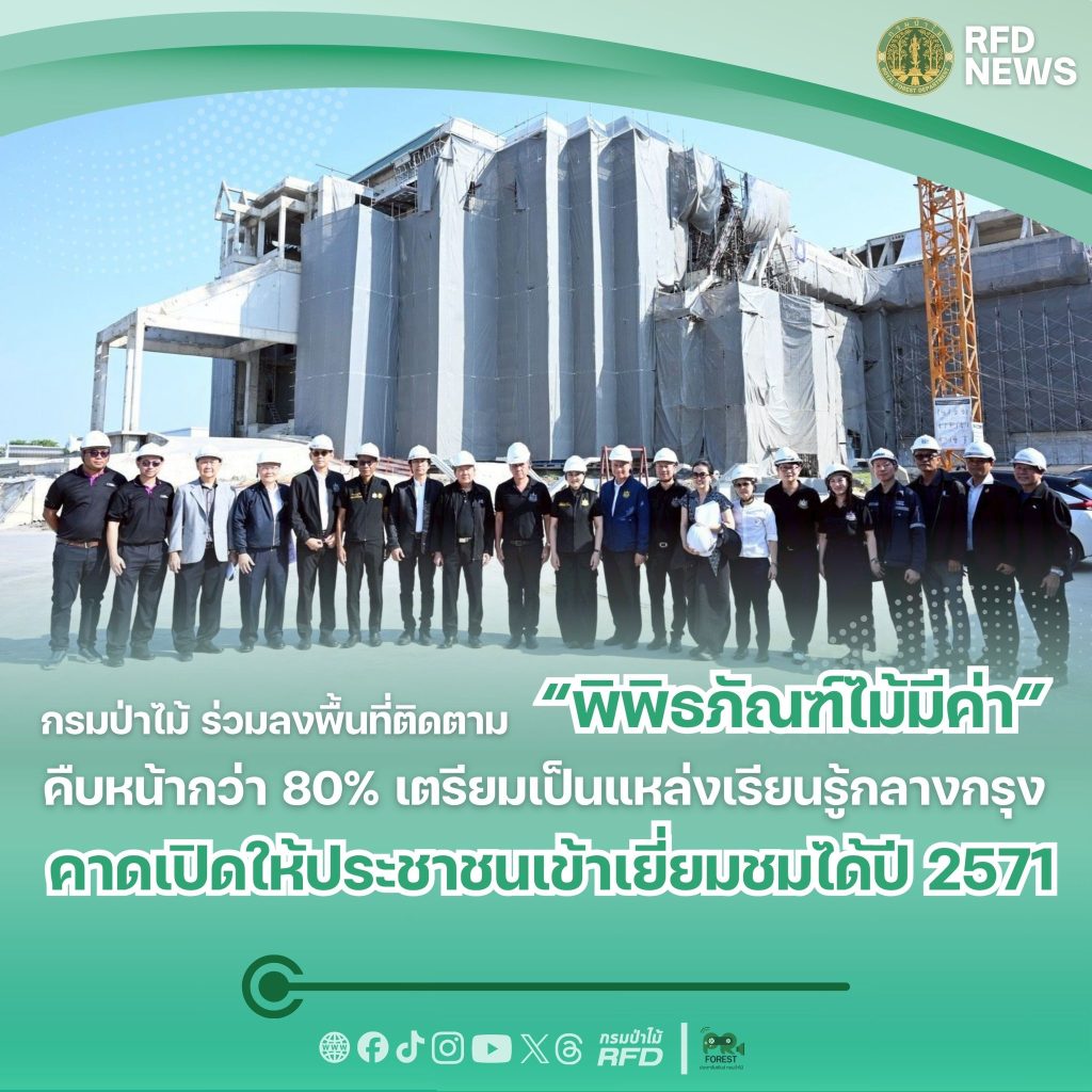 อธิบดีกรมป่าไม้ มอหมายให้ นายโกสิทธิ์ นิลรัตน์ ผู้อำนวยการสำนักป้องกันรักษาป่า และควบคุมไฟป่า ร่วมลงพื้นที่ติดตามความคืบหน้าโครงการก่อสร้าง “พิพิธภัณฑ์องค์ความรู้เรื่องไม้มีค่า” ระยะที่ 1 ในพื้นที่แขวงพลับพลา เขตวังทองหลาง กรุงเทพมหานคร กับ ดร.รวีวรรณ ภูริเดช ปลัดกระทรวงทรัพยากรธรรมชาติและสิ่งแวดล้อม ซึ่งเป็นโครงการสำคัญของรัฐบาลในการพัฒนาแหล่งเรียนรู้ด้านทรัพยากรธรรมชาติและสิ่งแวดล้อมของประเทศ โดยโอกาสนี้ ปลัดกระทรวงฯ ได้ตรวจสอบความก้าวหน้าของงานก่อสร้าง พร้อมกำชับหน่วยงานที่เกี่ยวข้องให้ดำเนินงานอย่างรอบคอบ โดยคำนึงถึงความปลอดภัย ความคุ้มค่า และประโยชน์ของประชาชนในระยะยาว อีกทั้ง ได้เน้นย้ำให้มีการวางแผนรองรับการซ่อมบำรุงในอนาคต การออกแบบระบบป้องกันอัคคีภัยให้รัดกุมทั้งภายในและภายนอกอาคาร การปรับปรุงทางเข้า – ออก ให้เหมาะสมและสมพระเกียรติ รวมถึงส่งเสริมการใช้พลังงานสะอาด เช่น พลังงานแสงอาทิตย์ การเพิ่มพื้นที่สีเขียวในอาคาร การนำน้ำกลับมาใช้ซ้ำ และการจัดการขยะอย่างมีประสิทธิภาพ