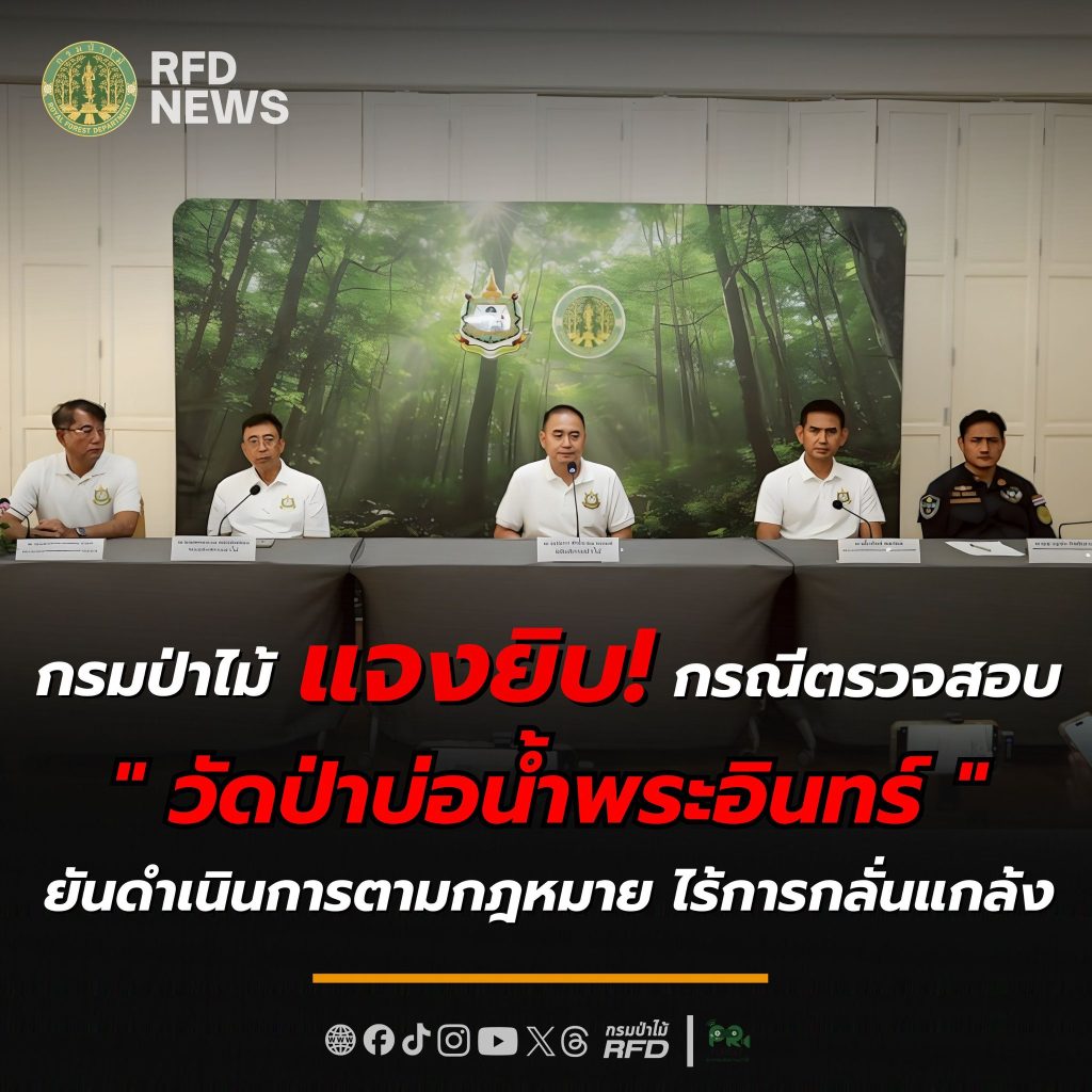 กรมป่าไม้ แถลงข่าวชี้แจงกรณีหน่วยพยัคฆ์ไพร เข้าตรวจสอบที่พักสงฆ์วัดป่าบ่อน้ำพระอินทร์ จ.อุบลราชธานี พบก่อสร้างสิ่งปลูกสร้างนอกเขตอนุญาตกว่า 12 ไร่ พร้อมโต้ประเด็นวิพากษ์วิจารณ์ในสื่อสังคมออนไลน์ เกี่ยวกับภาพถ่ายดาวเทียม