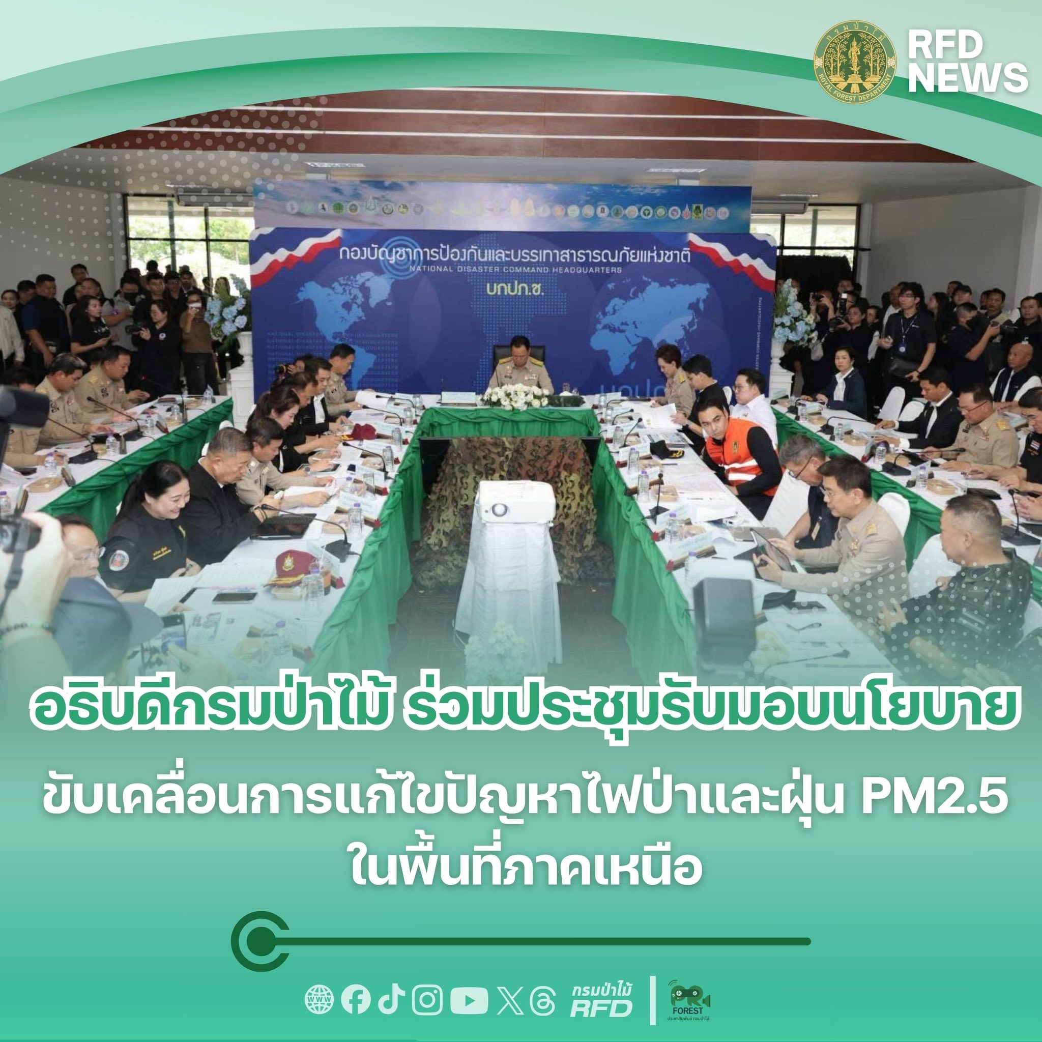 นายนิกร ศิรโรจนานนท์ อธิบดีกรมป่าไม้ พร้อมด้วย นางลักษวรรณ พวงไม้มิ่ง ผู้อำนวยการสำนักจัดการทรัพยากรป่าไม้ที่ 1 (เชียงใหม่) และเจ้าหน้าที่กรมป่าไม้ เข้าร่วมการประชุมติดตามและขับเคลื่อนการแก้ไขปัญหาไฟป่า หมอกควัน และฝุ่นละอองขนาดเล็ก (PM2.5) พร้อมทั้งรับมอบนโยบายในการดำเนินงานแก้ไขปัญหา