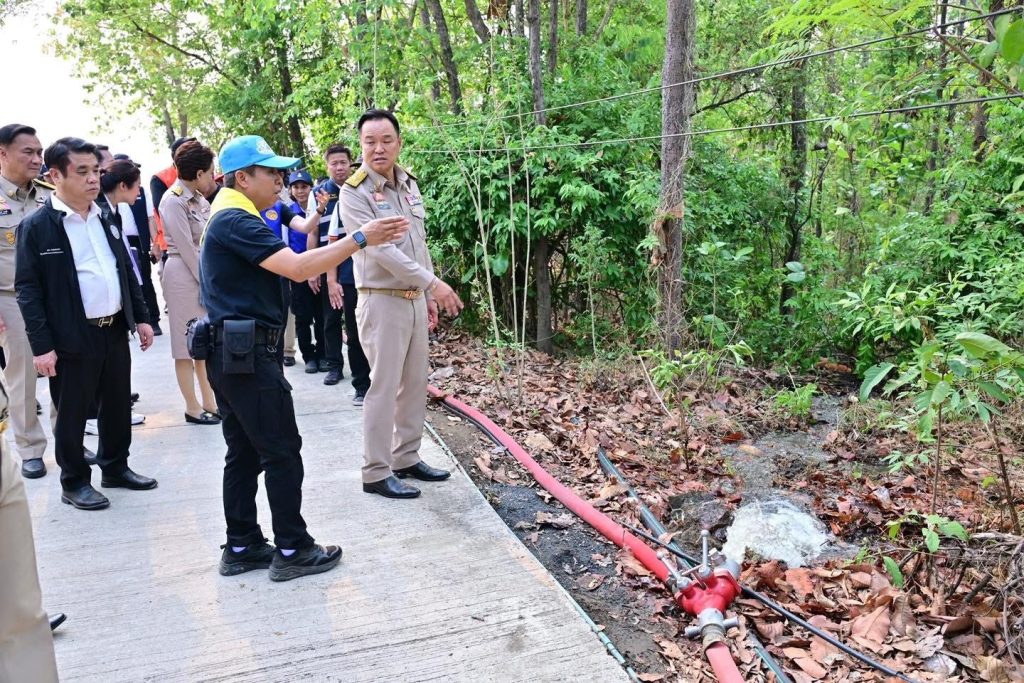 ภายหลังการประชุม คณะได้ลงพื้นที่วัดพระธาตุดอยสะเก็ด อำเภอดอยสะเก็ด จังหวัดเชียงใหม่ เพื่อติดตามการดำเนินงานในพื้นที่ ทั้งภารกิจดับไฟป่าตามแนวคิด “ป่าเปียก” (Wet Fire Break) และการสาธิตการใช้เทคโนโลยีอากาศยานไร้คนขับ (UAV) ขนาดใหญ่ (โดรน) ในการสำรวจและสนับสนุนการดับไฟป่า พร้อมทั้งให้กำลังใจเจ้าหน้าที่ผู้ปฏิบัติงานในพื้นที่