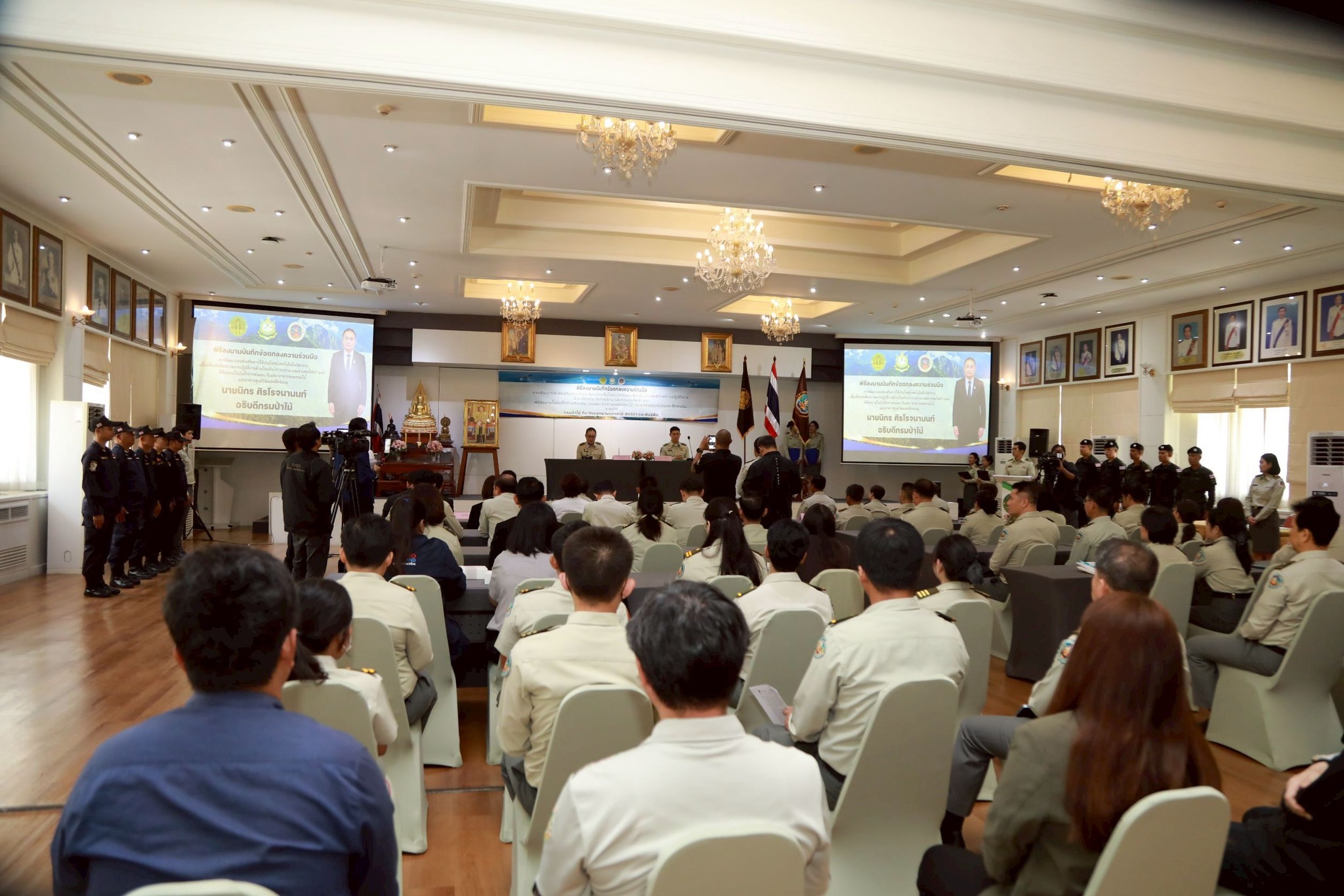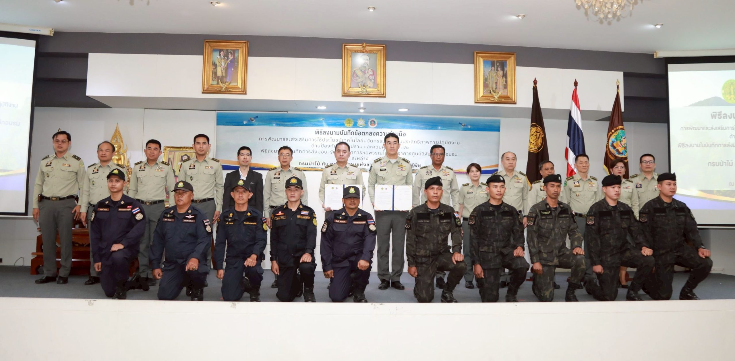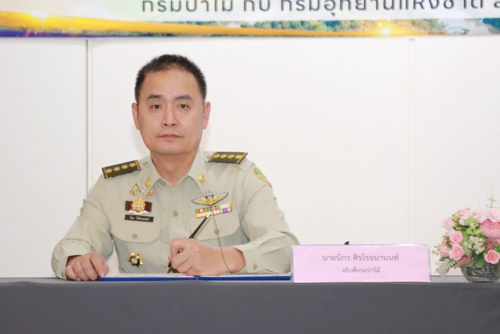 นายเผด็จ พวงจำปา ผู้อำนวยการสำนักบริหารกลาง เข้าร่วมพิธีร่วมลงนามในบันทึกข้อตกลงความร่วมมือ (MOU) เรื่อง การพัฒนาและส่งเสริมการใช้ประโยชน์ เทคโนโลยีนวัตกรรม เพื่อเพิ่มประสิทธิภาพการปฏิบัติงานด้านป้องกัน ปราบปราม และควบคุมไฟป่า โดยมีนายนิกร ศิรโรจนานนท์ อธิบดีกรมป่าไม้ ร่วมกับ นายอรรถพล เจริญชันษา อธิบดีกรมอุทยานแห่งชาติ สัตว์ป่า และพันธุ์พืช ลงนามในบันทึกข้อตกลงความร่วมมือ (MOU) โดยมี นายพัฒน์พงษ์ สมิตติพัฒน์ รองอธิบดีกรมป่าไม้ นายวีระ ขุนไชยรักษ์ ดร.แสงจันทร์ วายทุกข์ รองอธิบดีกรมอุทยานแห่งชาติ สัตว์ป่า และพันธุ์พืช ตลอดจนคณะผู้บริหารจากทั้งสองหน่วยงานร่วมเป็นสักขีพยาน