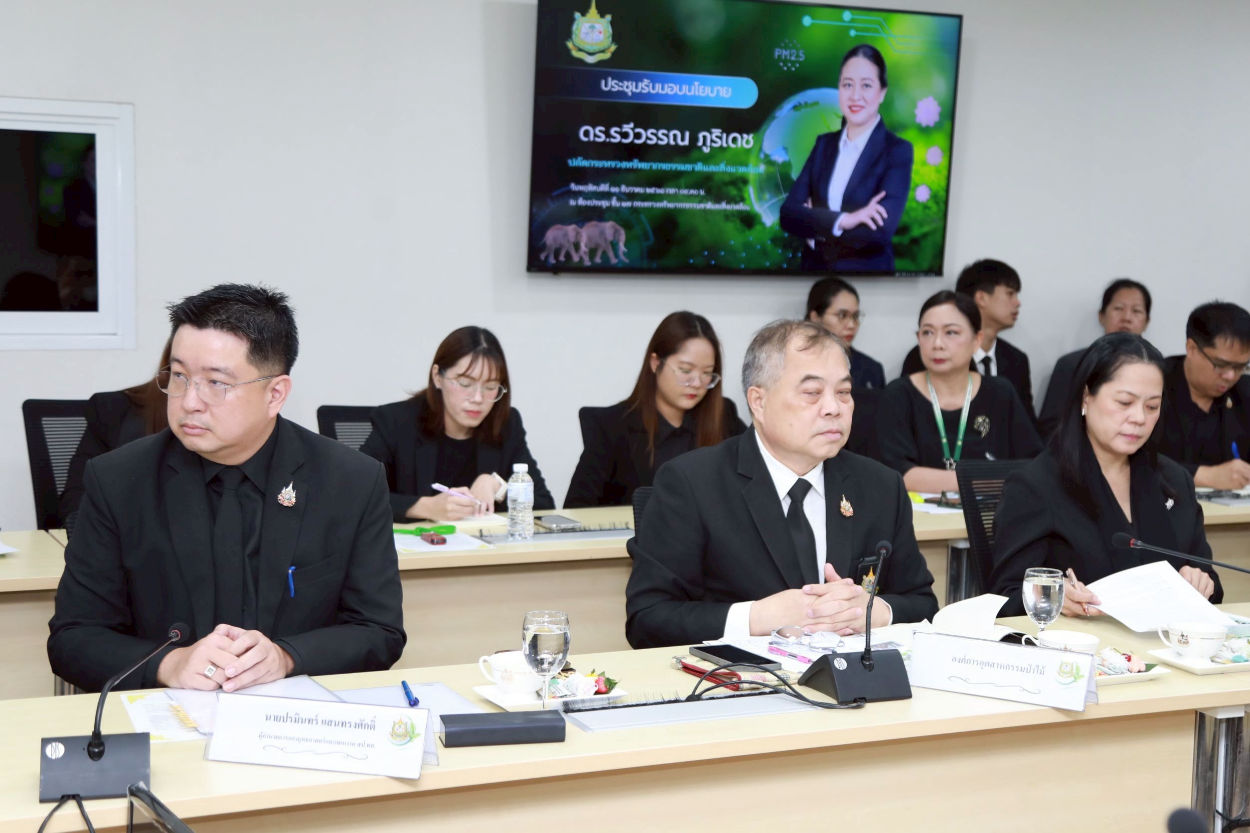 โดยปลัดกระทรวงทรัพยากรธรรมชาติและสิ่งแวดล้อม ได้เน้นย้ำให้ ผู้บริหาร ทส. น้อมนำพระราชดำรัสของพระบาทสมเด็จพระบรมชนกาธิเบศร มหาภูมิพลอดุลยเดชมหาราช บรมนาถบพิตร และพระบาทสมเด็จพระปรเมนทรรามาธิบดีศรีสินทรมหาวชิราลงกรณ พระวชิรเกล้าเจ้าอยู่หัว ที่ทรงมีพระราชปณิธาน “สืบสาน รักษา ต่อยอด” รวมถึงนโยบายของนายสุชาติ ชมกลิ่น รองนายกรัฐมนตรี และรัฐมนตรีว่าการกระทรวงทรัพยากรธรรมชาติและสิ่งแวดล้อม ให้คนอยู่กับป่า “คนอยู่ได้ ป่าอยู่ได้” นำเทคโนโลยีมาใช้ในการปฏิบัติงานท่ามกลางข้อจำกัด โดยยึดหลักความโปร่งใส ตรวจสอบได้ และที่สำคัญให้ทุกหน่วยงานในสังกัด ทส. เร่งรัดดำเนินโครงการแก้ปัญหาความเดือดร้อนของประชาชน ตามแผน Quick Win เพื่อพัฒนาคุณภาพชีวิตประชาชนต้องเดินควบคู่กับการอนุรักษ์ทรัพยากรอย่างยั่งยืน