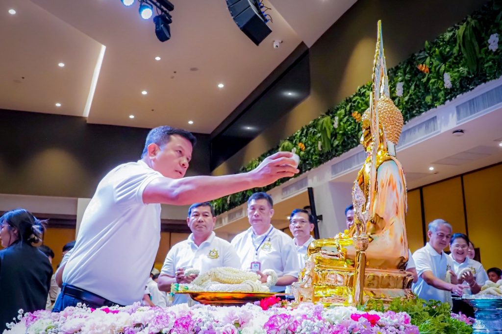 คณะผู้บริหารกรมป่าไม้ ร่วมกิจกรรมรดน้ำดำหัวเนื่องในเทศกาลสงกรานต์ พุทธศักราช 2569 โดยนายสุชาติ ชมกลิ่น รัฐมนตรีว่าการกระทรวงทรัพยากรธรรมชาติและสิ่งแวดล้อม เป็นประธาน พร้อมด้วย ดร.รวีวรรณ ภูริเดช ปลัดกระทรวงทรัยพากรธรรมชาติและสิ่งแวดล้อม นำคณะผู้บริหาร ข้าราชการ และเจ้าหน้าที่ ร่วมพิธีสรงน้ำพระและรดน้ำขอพรผู้ใหญ่เพื่อความเป็นสิริมงคลในโอกาสวันขึ้นปีใหม่ไทย เสริมสร้างความสุข ความสามัคคี และขวัญกำลังใจแก่บุคลากรของกระทรวงฯ ตลอดจนร่วมสืบสานวัฒนธรรมประเพณีอันดีงามของไทยให้คงอยู่สืบไป ทั้งนี้ บรรยากาศเป็นไปอย่างอบอุ่น สะท้อนถึงความร่วมมือร่วมใจของบุคลากรกระทรวงทรัพยากรธรรมชาติและสิ่งแวดล้อม ในการก้าวสู่ปีใหม่ไทยอย่างเข้มแข็งและยั่งยืน