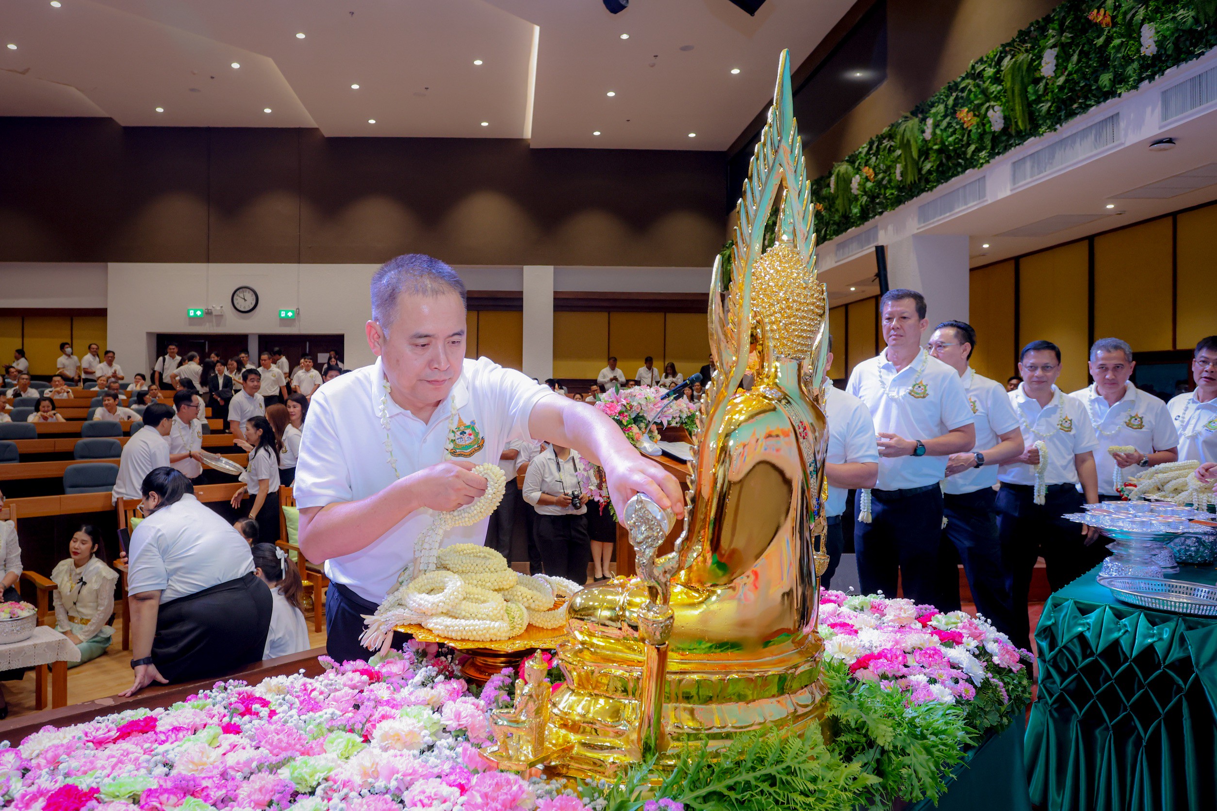 คณะผู้บริหารกรมป่าไม้ ร่วมกิจกรรมรดน้ำดำหัวเนื่องในเทศกาลสงกรานต์ พุทธศักราช 2569 โดยนายสุชาติ ชมกลิ่น รัฐมนตรีว่าการกระทรวงทรัพยากรธรรมชาติและสิ่งแวดล้อม เป็นประธาน พร้อมด้วย ดร.รวีวรรณ ภูริเดช ปลัดกระทรวงทรัยพากรธรรมชาติและสิ่งแวดล้อม นำคณะผู้บริหาร ข้าราชการ และเจ้าหน้าที่ ร่วมพิธีสรงน้ำพระและรดน้ำขอพรผู้ใหญ่เพื่อความเป็นสิริมงคลในโอกาสวันขึ้นปีใหม่ไทย เสริมสร้างความสุข ความสามัคคี และขวัญกำลังใจแก่บุคลากรของกระทรวงฯ ตลอดจนร่วมสืบสานวัฒนธรรมประเพณีอันดีงามของไทยให้คงอยู่สืบไป ทั้งนี้ บรรยากาศเป็นไปอย่างอบอุ่น สะท้อนถึงความร่วมมือร่วมใจของบุคลากรกระทรวงทรัพยากรธรรมชาติและสิ่งแวดล้อม ในการก้าวสู่ปีใหม่ไทยอย่างเข้มแข็งและยั่งยืน