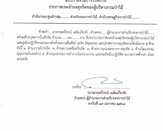ประกาศเจตจำนงสุจริตของผู้บริหารกรมป่าไม้