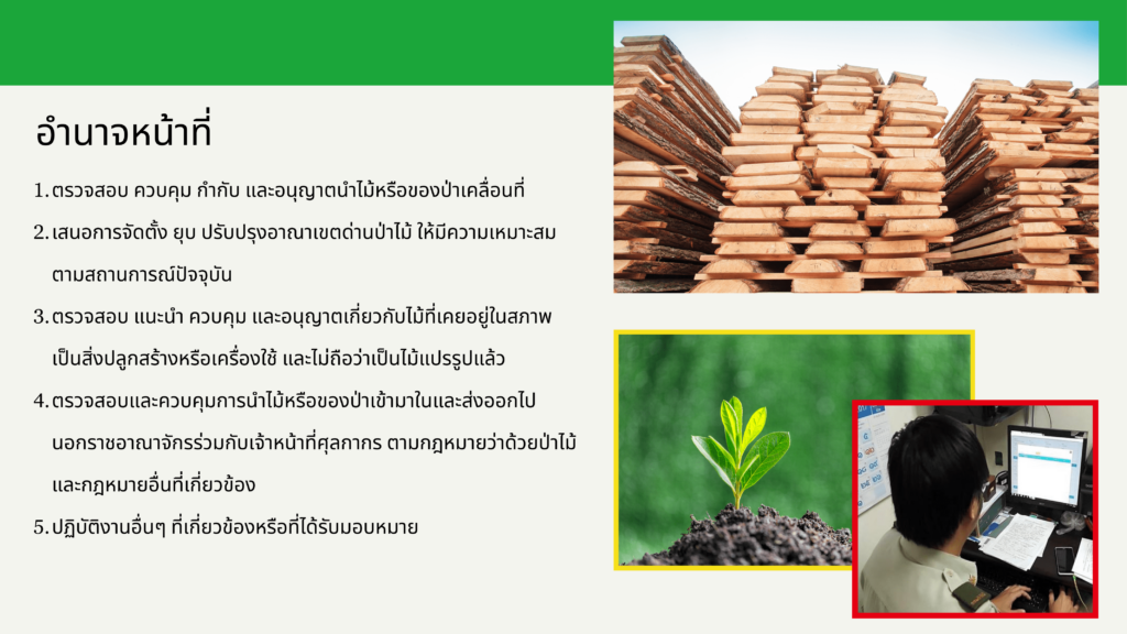 กิจกรรม ตรวจสอบ ควบคุม เเละบริการนำไม้หรือของป่าเคลื่อนที่
