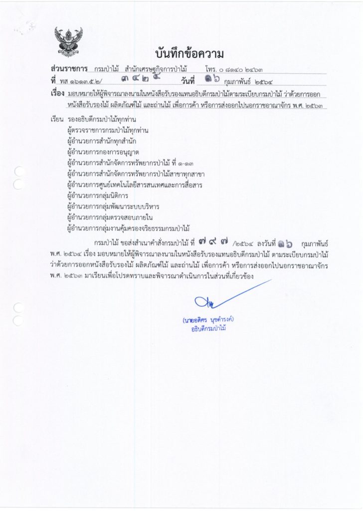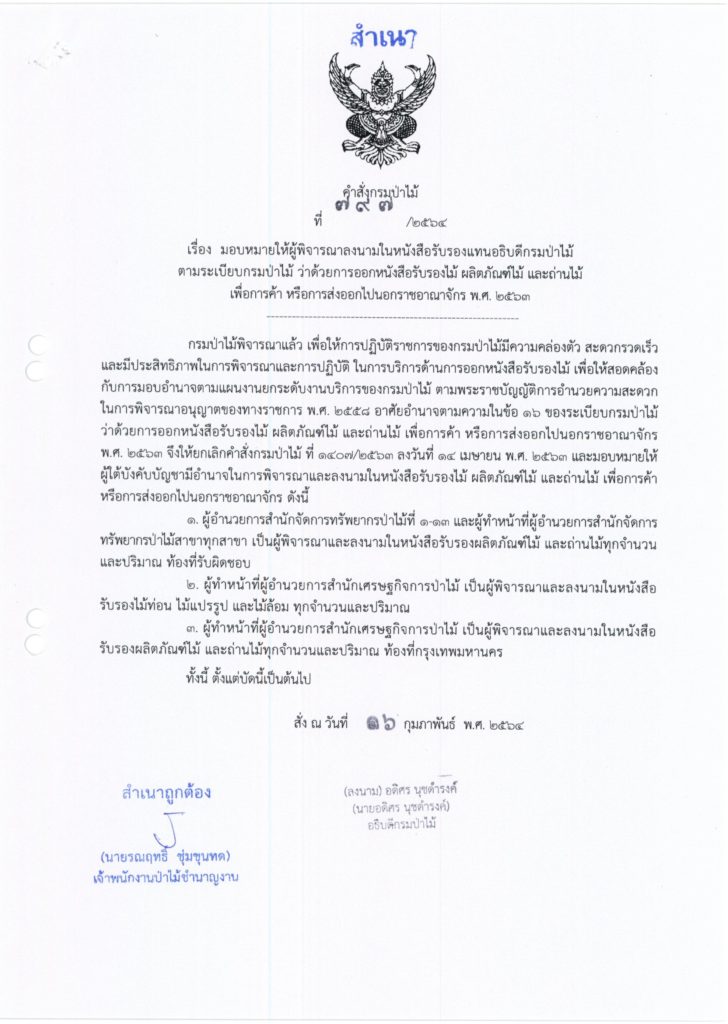 มอบหมายให้ผู้พิจารณาลงนามในหนังสือรับรองแทนอธิบดีกรมป่าไม้ตามระเบียบกรมป่าไม้ เผยแพร่แล้ว 5 พฤษภาคม 2021 มอบหมายให้ผู้พิจารณาลงนามในหนังสือรับรองแทนอธิบดีกรมป่าไม้ตามระเบียบกรมป่าไม้ดาวน์โหลด