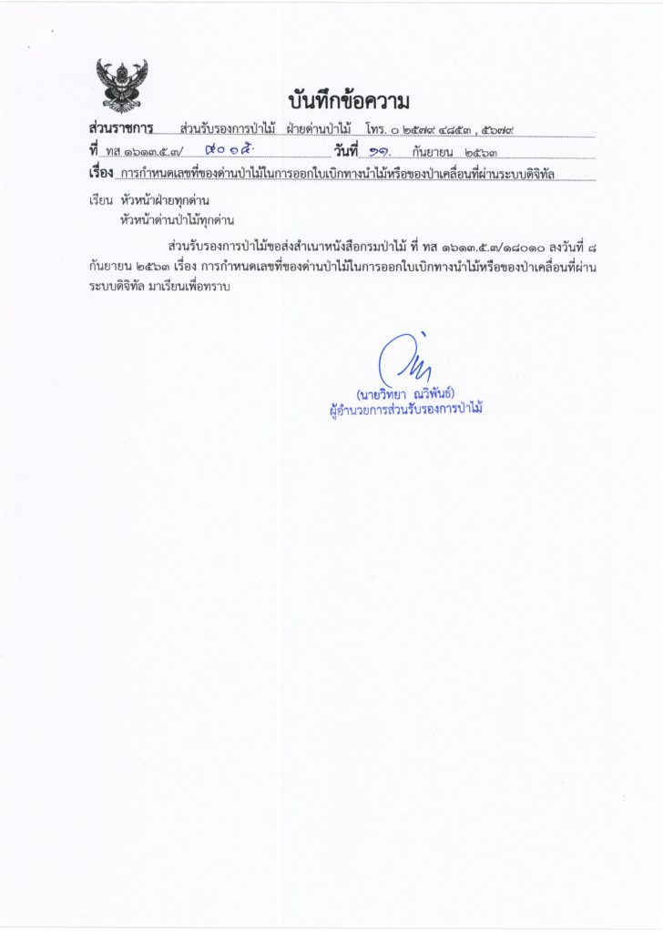 การกำหนดเลขที่ของด่านป่าไม้ในการออกใบเบิกทางนำไม้หรือของป่าเคลื่อนที่ผ่านระบบดิจิทัล