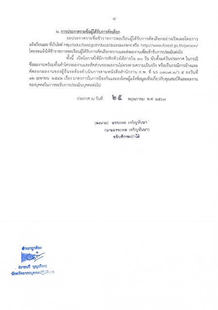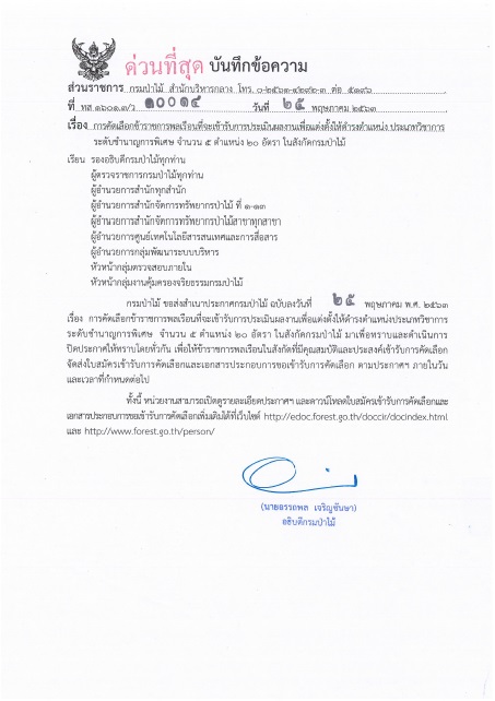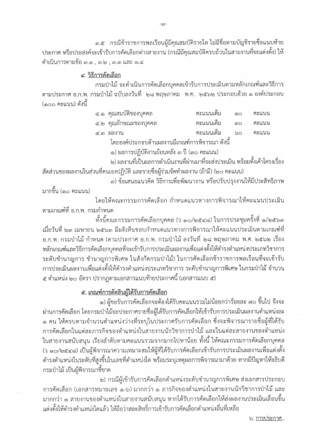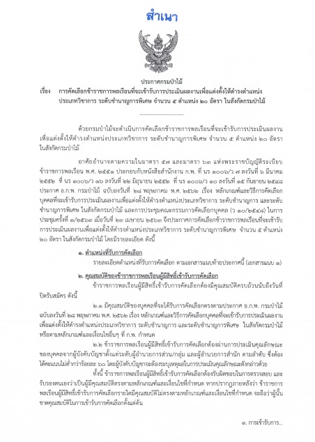 การคัดเลือกข้าราชการพลเรือนที่จะเข้ารับการประเมินผลงานเพื่อแต่งตั้งให้ดำรงตำแหน่ง ประเภทวิชาการ ระดับชำนาญการพิเศษ จำนวน 5 ตำแหน่ง 20 อัตรา ในสังกัดกรมป่าไม้